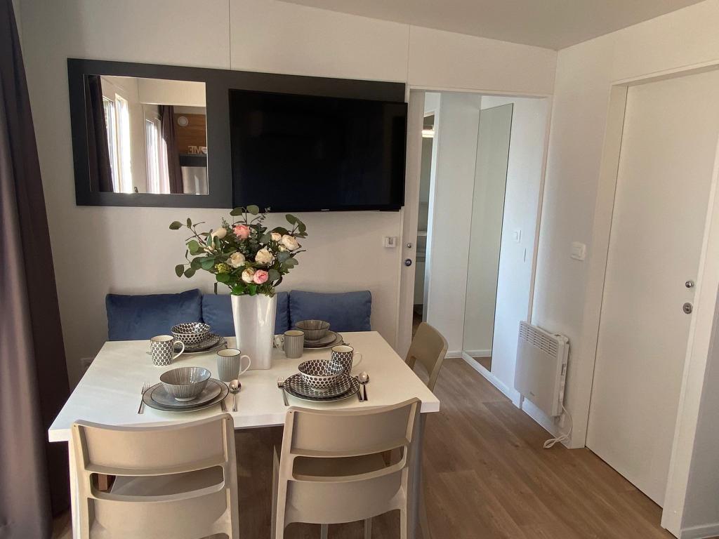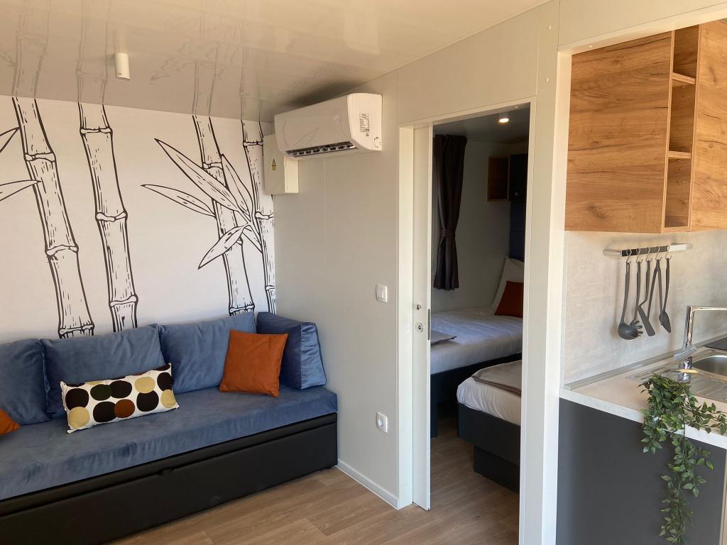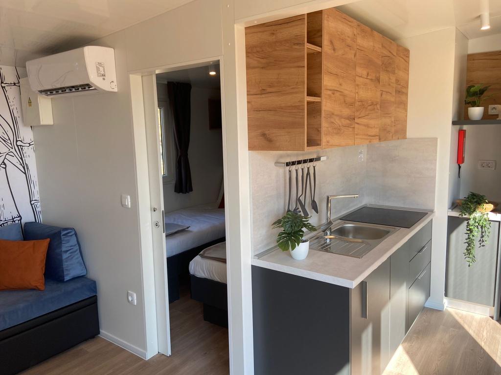 Oferujemy zakwaterowanie w doskonale wyposażonych, zupełnie nowych domkach mobilnych w Selce, kemping Selce (Adriatyk Crikvenica). Nasze domki mobilne znajdują się na pozycjach premium, tuż obok pięknego nowego kompleksu bio-basenów na dwóch kaskadach. Komfort hotelu na łonie natury w naszych domkach z widokiem na morze. Dom przeznaczony dla 6 osób, w pełni wyposażony, każda z dwiema oddzielnymi sypialniami, każda z łazienką, jadalnią, w pełni wyposażoną kuchnią (nawet jak na standardy Masterchef), a jako wisienka na torcie piękny taras z meblami wypoczynkowymi i stołem na lunch . Spokój, śpiew ptaków, bliskość morza i basenu... czy to nie brzmi dla Ciebie jak wakacje?