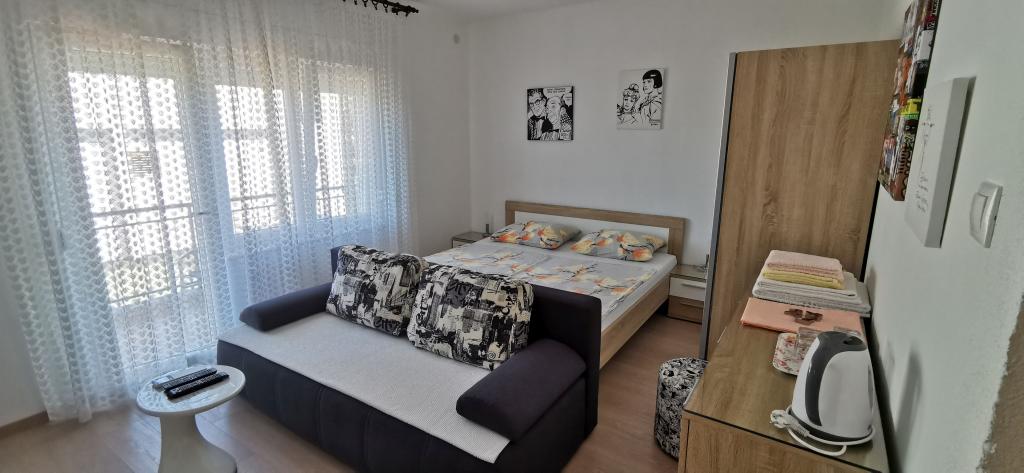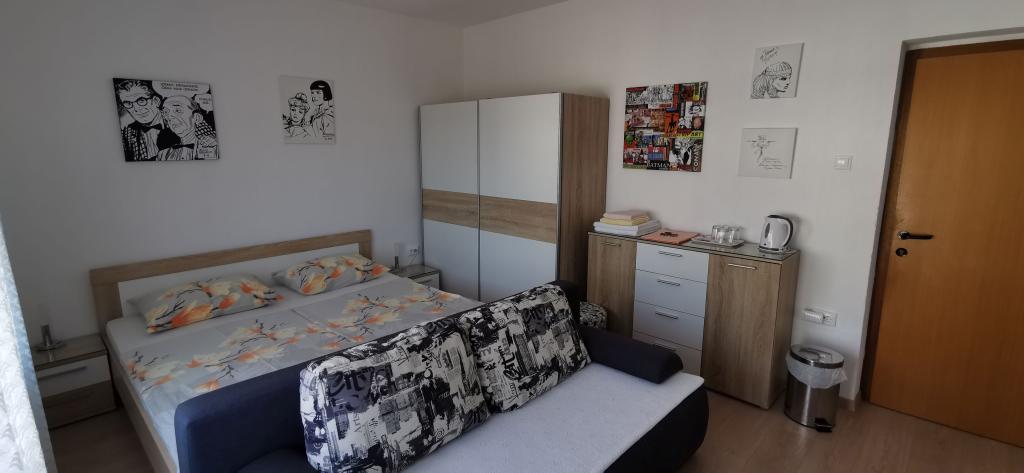 Wykorzystanie klimatu jest wliczone w cenę we wszystkich pokojach! Kuopaonica (WC) nie jest częścią pokoju. Jedna łazienka (wc) ma 2 pokoje. Lodówka jest wspólna na korytarzu. Czas przybycia to 14 godzin z góry. Czas wyjazdu wynosi do 10 godzin. Minimalna liczba noclegów w pokojach to 3 noce. Dzieci do lat 7 płacą 5 euro za noc, a dzieci od 8 do 12 lat płacą 8 euro za noc.
