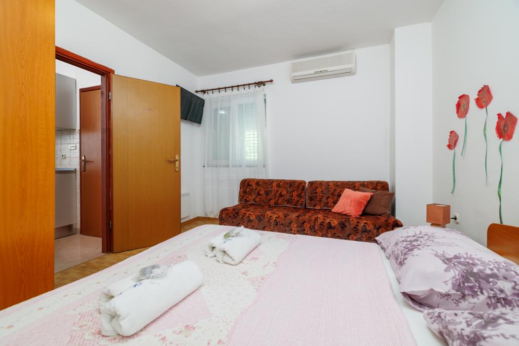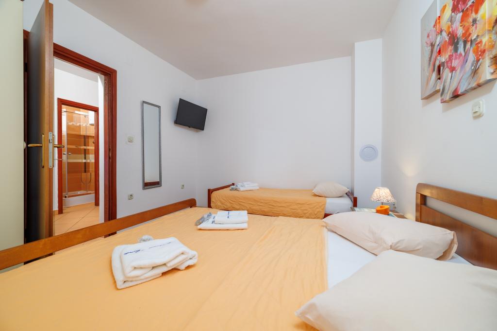 Komfortowe pokoje, część pokoju jest łazienka, balkon, lodówka. Znajduje się w bardzo spokojnej części miasta, zaledwie 5 minut drogi od plaży. Jest klimatyzowany, oraz parking dla samochodu. W ogrodzie znajduje się grill i stół z krzesłami, tak, że jest to możliwe i obiad. Mario i jego rodzina są bardzo obsługa i zawsze są tam, aby odpowiedzieć na Twoje pytania. Dziękujemy za krótkiej, ale pięknej sali. Tina i Tom