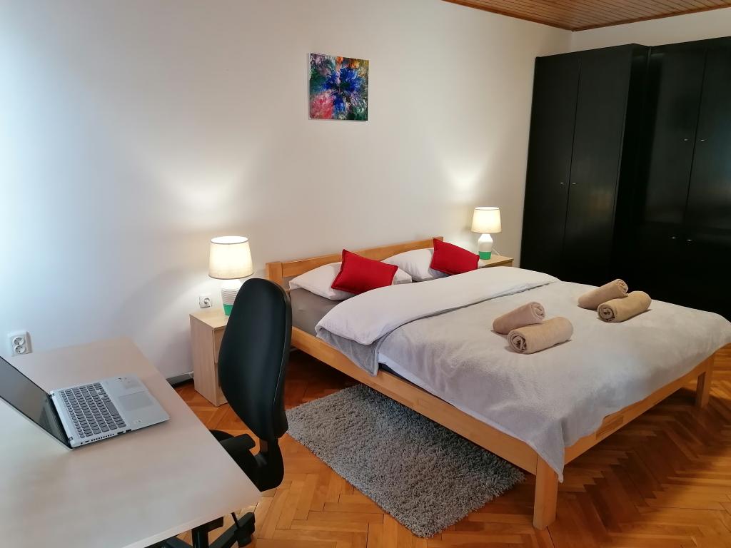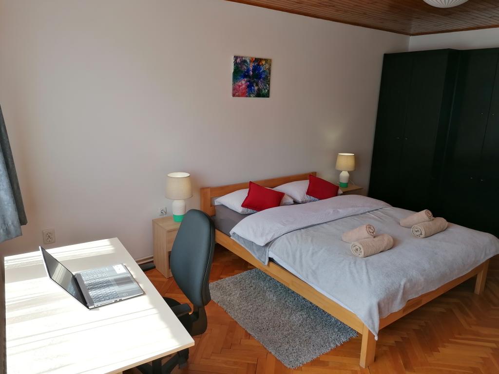 Witamy w naszym uroczym i przestronnym apartamencie o powierzchni 65 m², położonym w spokojnej dzielnicy Dubec, Sesvete! Tylko 400m od głównego dworca autobusowego i tramwajowego jest idealnym miejscem na wypoczynek lub pobyt służbowy. Ciesz się jasnym salonem z jadalnią dla 4 osób, w pełni wyposażoną kuchnią (kuchenka, lodówka) i wygodną sypialnią z łóżkiem (160x200 cm) oraz wysokiej jakości materacem i wysokiej jakości poduszkami. Zrelaksuj się na balkonie przy porannej kawie lub w łazience z wanną. Mieszkanie jest klimatyzowane, z bezpłatnym Wi-Fi i całodobową ochroną dzięki kamerze Reolink. Tylko 3 minuty spacerem dzielą Cię od sklepu i rynku. Trg ban Jelačić jest 35-45 minut tramwajem, Maksimir 20-30 minut samochodem, a Jarun tylko 25 minut. Zagrzeb jest kluczowym węzłem komunikacyjnym łączącym Europę z Adriatykiem, a nasz apartament ma doskonałe połączenie ze wszystkimi głównymi autostradami: A3 do Słowenii i Europy Zachodniej, A4 do północnej Chorwacji i Węgier, A1 do Dalmacji i A2 do Słowenii.