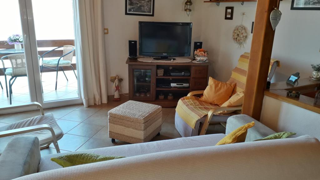 Przestronne dwupokojowe mieszkanie na pierwszym piętrze z dużym salonem i balkonem z widokiem na morze (10m dalej) i całą zatokę. Położony jest w samym centrum miasta, które jest oazą spokoju i rodzinnego relaksu. Restauracja, kawiarnia i rynek znajdują się w odległości 70 m. Przed apartamentem znajduje się żwirowo-betonowa plaża z krystalicznie czystym morzem.