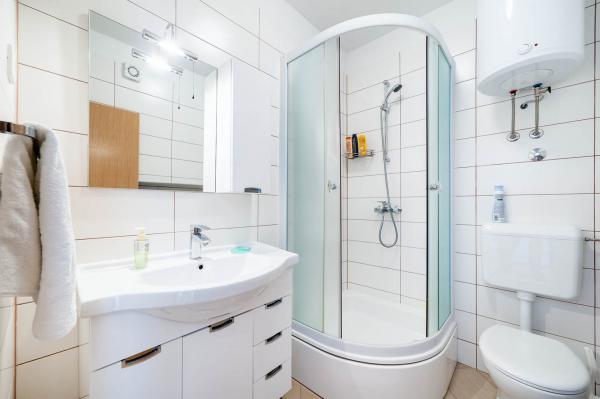 Razem z rodziną spędziłam w apartamencie cudowny urlop. Gościnni właścicieleNowy, luxusowy dom dopracowany w każdym detalu. Wyposażenie kuchni bardzo wysokiej jakości. Oczywiście ze zmywarką. Iwan z żoną zadbali nawet o takie szczegóły jak kieliszki do różnych win, szampana, serwetki, świece. Bardzo duży taras z widokiem na morze, gdzie jedliśmy posiłki. Do pięknej plaży 50m, do dyspozycji gości leżaki i parasol. Ogródek z pomidorami, truskawkami i figami. Świetnie wyposażona łazienka z pralką, czyściutkie ręczniki oraz wszelka niezbędna chemia włącznie z płynem do prania. Wygodne sypialnie. Jest to jedyny apartament w domu, cisza i błogi relax. Blisko sklep, bar-restauracja. Na większe zakupy i zwiedzanie można wybrać się do Trogiru-15 min drogi samochodem. W przyszłym roku na pewno tam wrócimy.