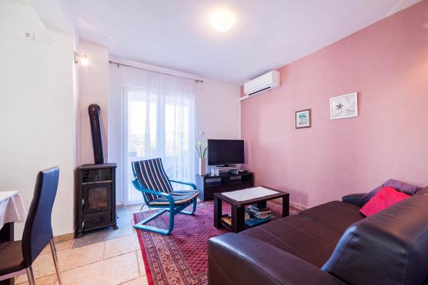 Mieszkanie jest w rzeczywistości dom z oddzielnym wejściem w pobliżu morza, nowoczesne w spokojnej części miasta. Posiada duży taras z widokiem na morze, dwie sypialnie z podwójnymi łóżkami, łazienka WC oraz dodatkowe WC. pralka. W salonie znajduje się rozkładana sofa dla 2 osób. W kuchni znajduje się zmywarka. Istnieją 3 miejsc parkingowych.