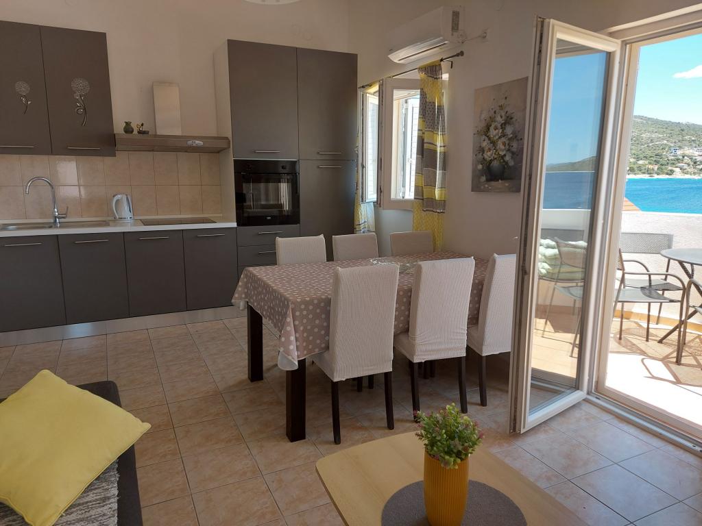 Wygodne iw pełni wyposażone apartamenty z widokiem na morze. Obiekt położony jest w cichej okolicy, 50m od morza i sklepów.