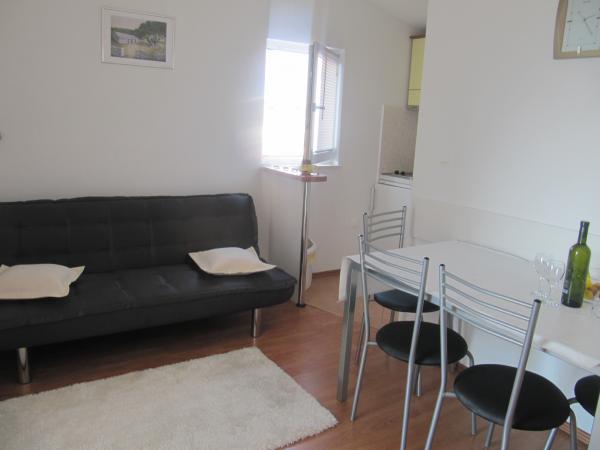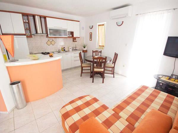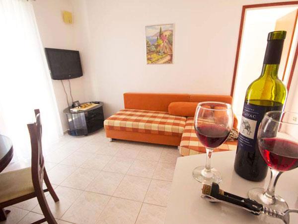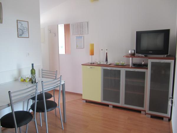 Mieszkanie znajduje się na parterze, przestronne i dobrze wyposażone we wszystko, co potrzebne w kuchni. Podwójne łóżko w pokoju było tylko spojrzeć trochę sztywny, ale bardzo wygodne do spania. Tu zatrzymaliśmy się na tydzień. To nie był powolny i dobrze pracował. Z tarasu i balkonu z pięknym widokiem na morze. Gospodarze byli bardzo przyjazny i zaszczycili nas z winem i figi. Plaże nie są daleko (4 min), a miejscowi mają swoje muły na zachód od domu, którego użyliśmy. Jest idealnie czysta woda. Zostań z Mirjana i Branka naprawdę lubił nas i chciał tu wrócić.