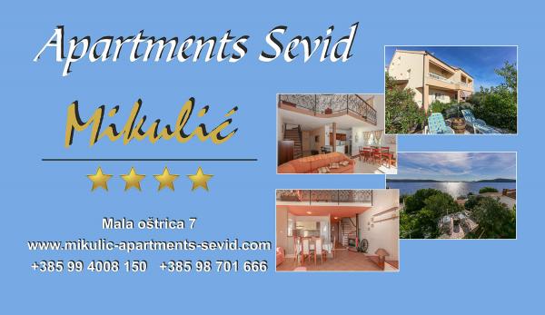 Sevid na moru, wystarczająco ukryty przed miejskim tłumem, ale wystarczająco blisko, aby wszystko zobaczyć. Słoneczny i ukryty zakątek dziewiczej przyrody, idealny na prawdziwe śródziemnomorskie wakacje. Choć mały, Sevid ma wszystko, czego potrzebujesz, sklepy, restauracje, kawiarnie, czyste morze i piękne plaże. Idealny dla rodzin z dziećmi podczas gorących letnich dni, a także zimą. Apartamenty Mikulić zlokalizowane są po wschodniej stronie półwyspu Sevid, 20 metrów od morza, z pięknym widokiem na morze, okoliczne wyspy i pełen zieleni ogród. Apartamenty mają 4 gwiazdki i można je nazwać prawdziwą luksusową willą wakacyjną. Goście mają dostęp do ogrodu z grillem, ogrodu śródziemnomorskiego, parkingu, plaży z przystanią dla łodzi. Piaszczysta plaża znajduje się bardzo blisko domu. oferujemy możliwość wynajęcia łodzi z apartamentem (łódź motorowa lub mała łódka). oferujemy również rowery wodne, narty wodne, deski sup, rowery. Powitanie!!!