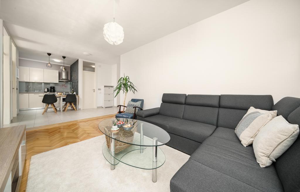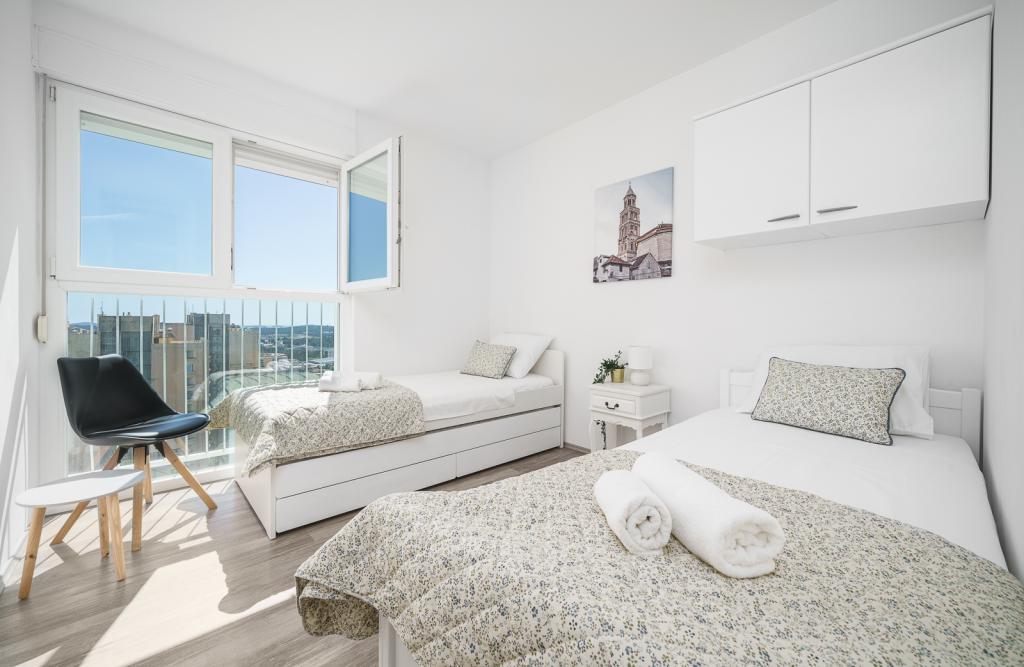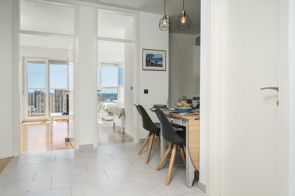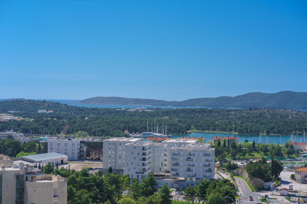 Apartament 9. Piętro to nowocześnie wyposażony apartament w budynku zlokalizowanym na 9. piętrze, z którego roztacza się wspaniały widok na morze i wyspy w pobliżu Szybenika. Powierzchnia mieszkania wynosi 70 metrów kwadratowych i składa się z dwóch sypialni, salonu, kuchni z jadalnią, toalety oraz tarasu z widokiem na morze. Obiekt położony jest w spokojnej części miasta, około 15 minut spacerem od centrum miasta. Parking jest bezpłatny, nie ma możliwości rezerwacji miejsca parkingowego
