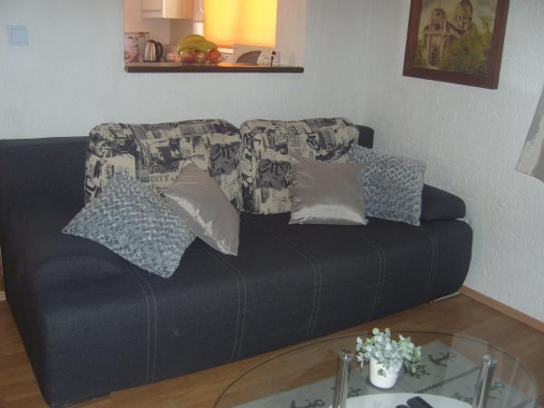 Wyposażony klimatyzowany apartament z miejscem parkingowym w garażu. Szerokość drzwi 2,50 a wysokość 2 metry. Ma sześć stóp długości. Odległość do plaży i starego miasta wynosi 5 min. Najlepiej dla 2 osób, ale w salonie jest sofa dla 2 osób. Cena idzie do WiFi i wszystko na liście. Mieszkanie znajduje się na poddaszu z pięknym widokiem.