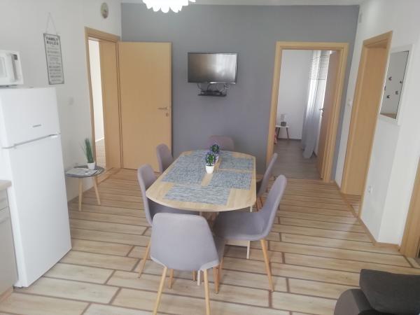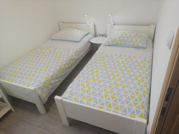 Apartament Antonia to nowo wyremontowany apartament położony w nowym domu rodzinnym. Mieszkanie jest nowocześnie urządzone i znajduje się w pobliżu starego dalmatyńskiego miasta Sibenik (3 km). Niedawno odnowiony apartament Antonia składa się z 2 sypialni z 2 łóżkami podwójnymi. 200x90 i 1 łóżko przyciemnione. 160x200, przestronny salon z aneksem kuchennym, który jest rozkładaną sofą. 200x140. Będziesz także cieszyć się łazienką, która jest nowocześnie urządzona w delikatnych pastelowych kolorach. W pobliżu apartamentu znajdują się liczne plaże, takie jak plaża Brodarica (2 km) i Solaris Beach Resort (3 km). Parking znajduje się na dziedzińcu, który jest ogrodzony i bezpłatny. Podczas pobytu jest duży grill na świeżym powietrzu, dwa tarasy i plac zabaw dla dzieci.