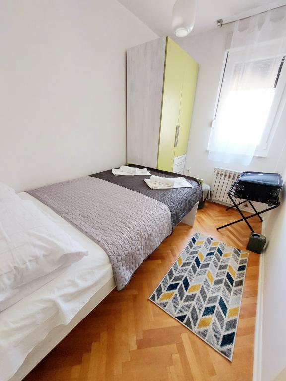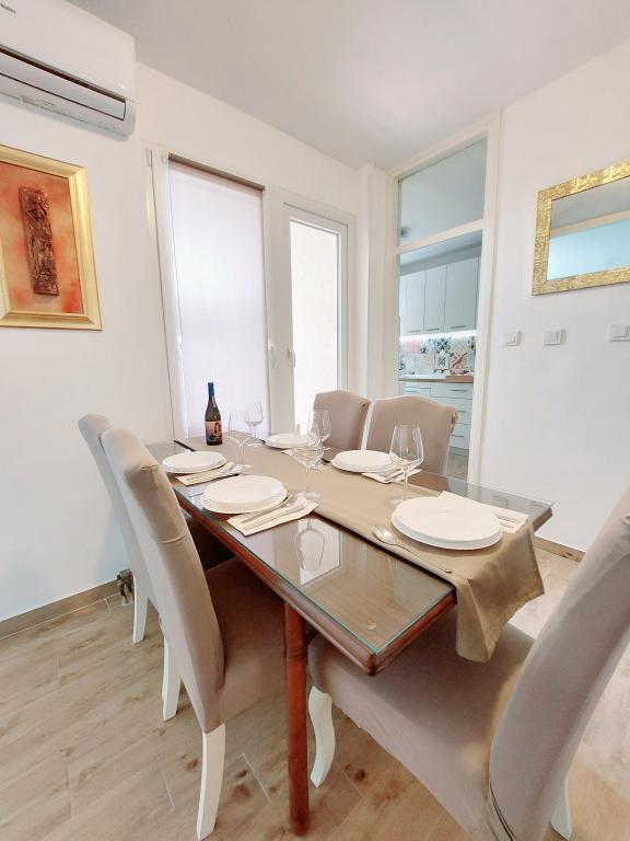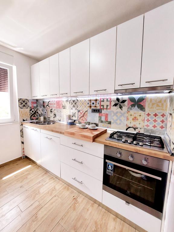 W pełni i nowocześnie wyposażony komfortowy apartament, w spokojnej części miasta. Apartament składa się z dwóch sypialni, kuchni, jadalni, salonu, łazienki, toalety dla gości, korytarza i balkonu. Odpowiedni dla rodzin z dziećmi, ale także dla osób w każdym wieku. Nieruchomość jest klimatyzowana, kuchnia jest w pełni wyposażona. Sprzęt Finess jest dostępny w apartamencie. Parking jest bezpłatny, nie jest wymagana rezerwacja. Nieruchomość znajduje się w bezpośrednim sąsiedztwie parku i placu zabaw dla dzieci. Budynek ma windę, również dostęp dla osób niepełnosprawnych. Sklep spożywczy znajduje się 50 m od obiektu. Fastfood i kawiarnia znajdują się 10 m dalej, a pierwsza restauracja znajduje się 1 km dalej. Nieruchomość znajduje się 1,5 km od centrum miasta i 1,2 km od miejskiej plaży. Jest to 15 minut jazdy od Parku Narodowego Krka (11 km).