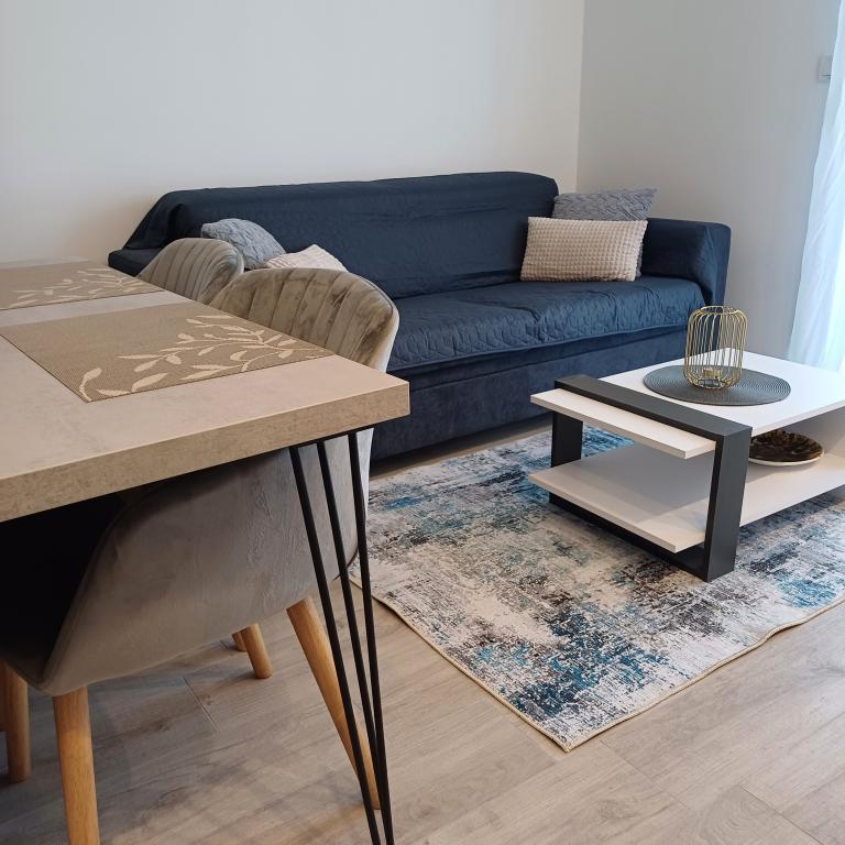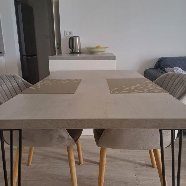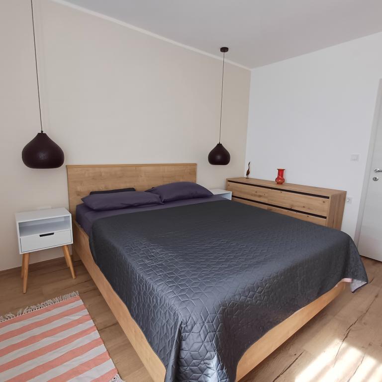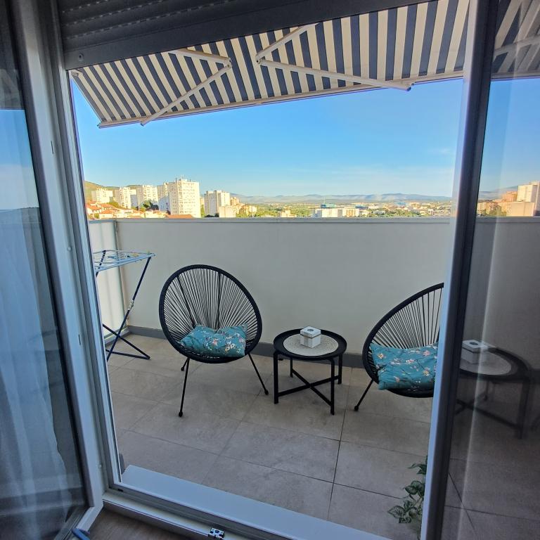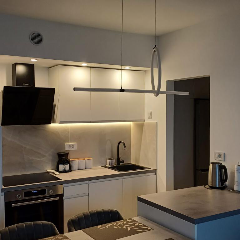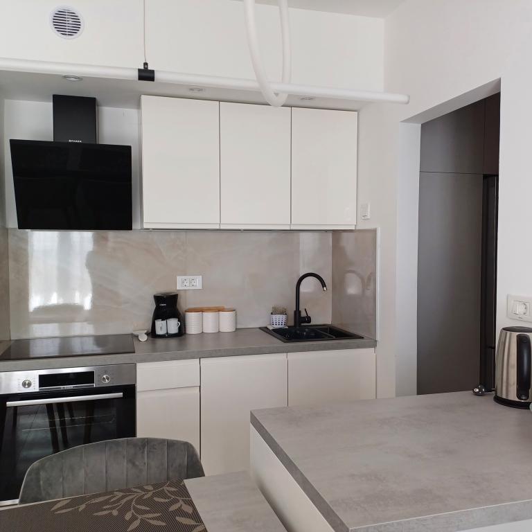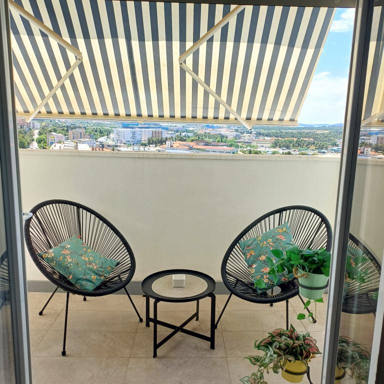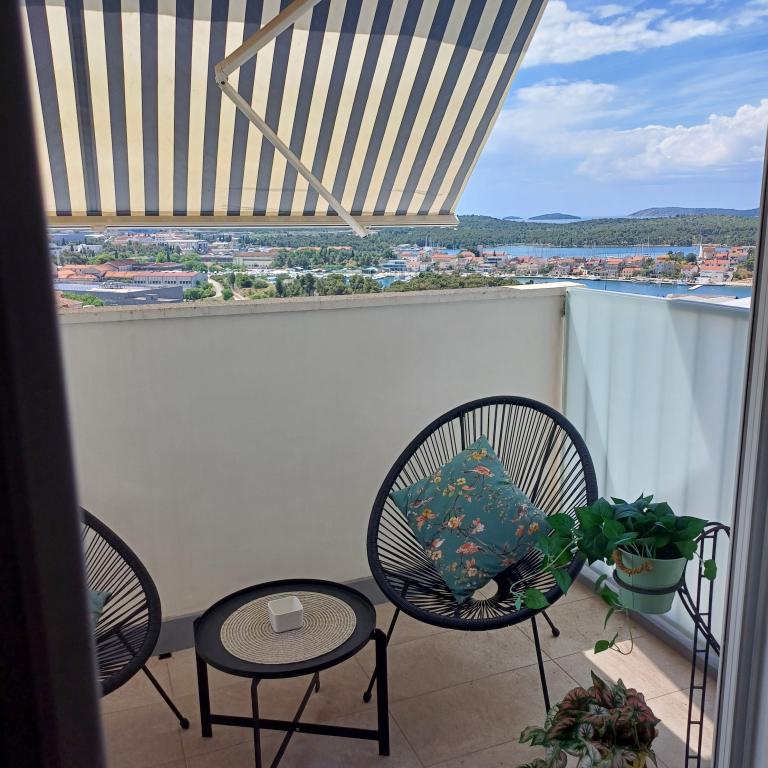 Luksusowy apartament znajduje się na 10. piętrze budynku mieszkalnego w Szybeniku, w doskonałej lokalizacji, 20 minut spacerem od centrum starego miasta i miejskiej plaży Banj. Luksusowe zakwaterowanie z balkonem z pięknym widokiem na morze i miasto zapewnia gościom przyjemny i relaksujący pobyt. Mieszkanie składa się z przestronnej sypialni, przedpokoju, łazienki z kabiną prysznicową, suszarką do włosów i pralką. Salon i jadalnia znajdują się w przestrzeni z nowoczesną kuchnią wyposażoną na krótki lub długi pobyt i znajdującą się w niej naczynia, przybory kuchenne, kuchenka, piekarnik, zmywarka, lodówka, czajnik i ekspres do kawy. Apartament jest klimatyzowany, a goście mają dostęp do telewizji i bezpłatnego Wi-Fi. Parking publiczny znajduje się przed samym budynkiem. Zaraz po wyjściu z budynku i przejściu na drugą stronę ulicy, w odległości 30 m znajduje się sklep spożywczy, apteka i kawiarnia oraz bank, poczta, pizzeria, siłownia, salon fryzjerski, centrum handlowe, dworzec autobusowy , przystań dla łodzi znajdują się w odległości 500 m - 700 m.