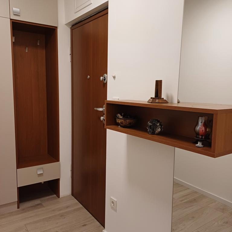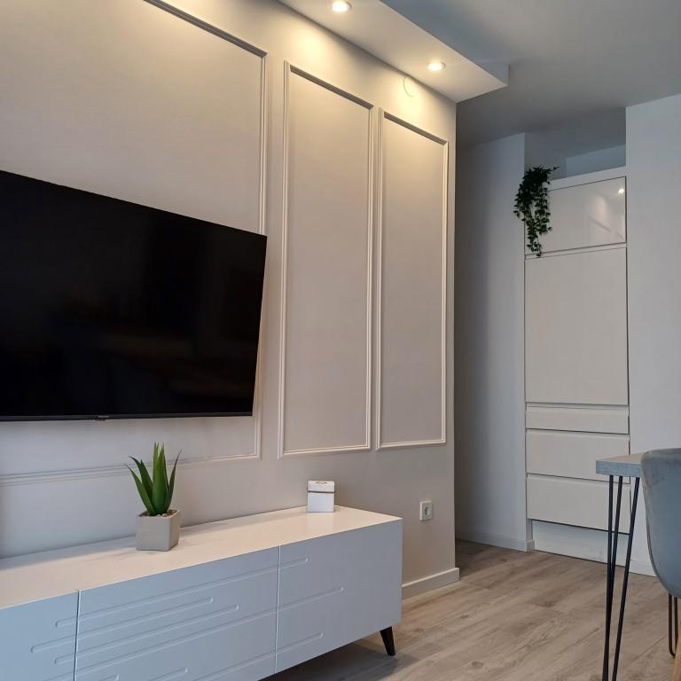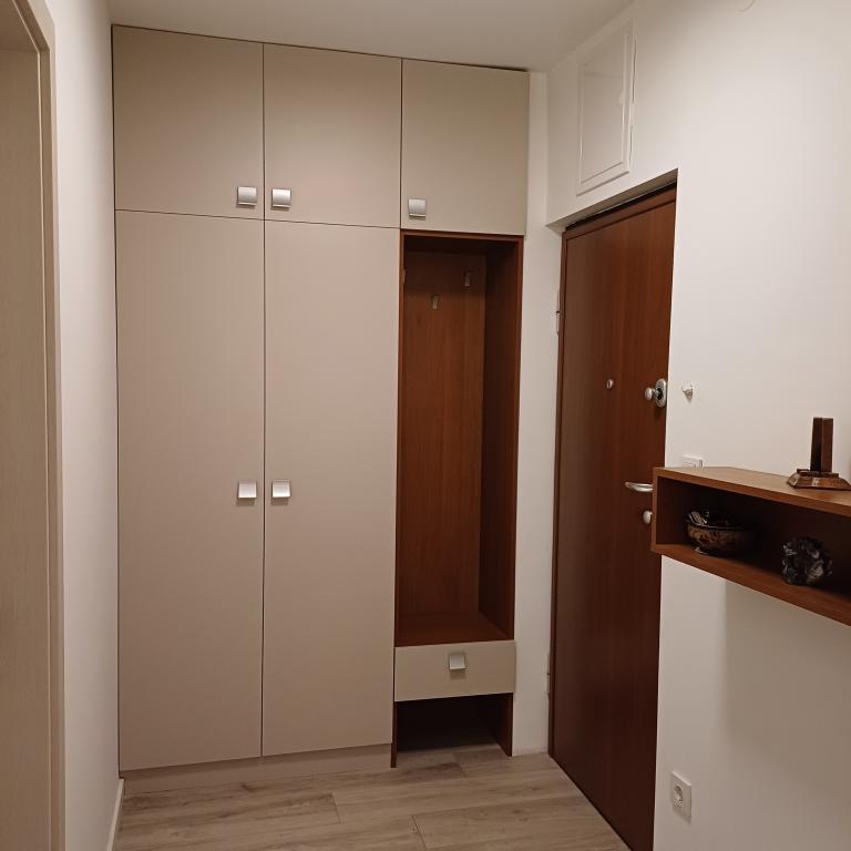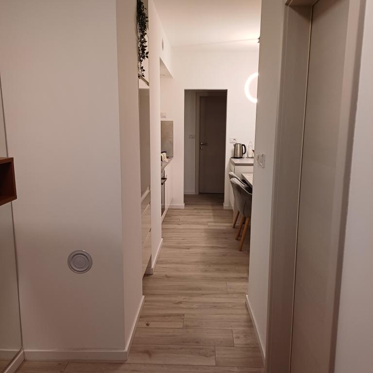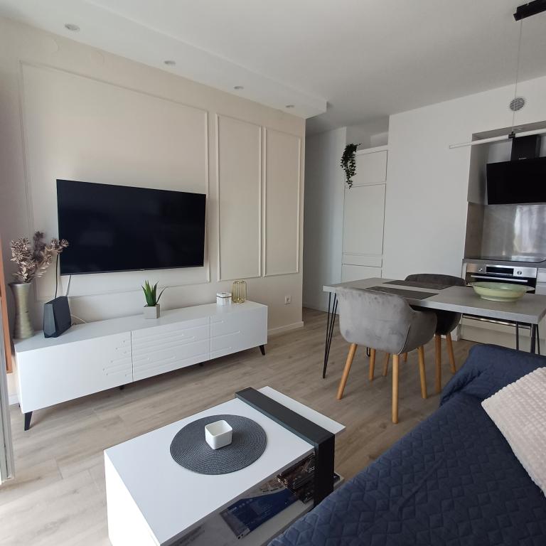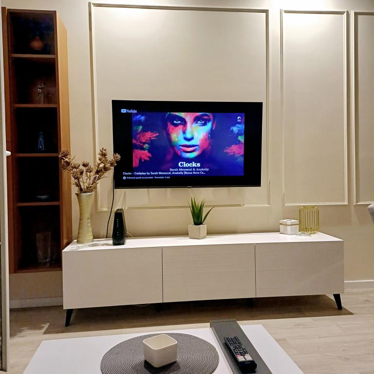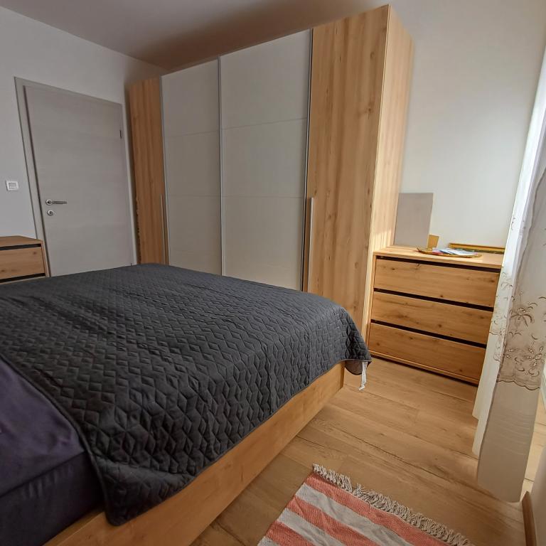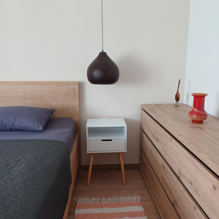 Luksusowy apartament znajduje się na 10. piętrze budynku mieszkalnego w Szybeniku, w doskonałej lokalizacji, 20 minut spacerem od centrum starego miasta i miejskiej plaży Banj. Luksusowe zakwaterowanie z balkonem z pięknym widokiem na morze i miasto zapewnia gościom przyjemny i relaksujący pobyt. Mieszkanie składa się z przestronnej sypialni, przedpokoju, łazienki z kabiną prysznicową, suszarką do włosów i pralką. Salon i jadalnia znajdują się w przestrzeni z nowoczesną kuchnią wyposażoną na krótki lub długi pobyt i znajdującą się w niej naczynia, przybory kuchenne, kuchenka, piekarnik, zmywarka, lodówka, czajnik i ekspres do kawy. Apartament jest klimatyzowany, a goście mają dostęp do telewizji i bezpłatnego Wi-Fi. Parking publiczny znajduje się przed samym budynkiem. Zaraz po wyjściu z budynku i przejściu na drugą stronę ulicy, w odległości 30 m znajduje się sklep spożywczy, apteka i kawiarnia oraz bank, poczta, pizzeria, siłownia, salon fryzjerski, centrum handlowe, dworzec autobusowy , przystań dla łodzi znajdują się w odległości 500 m - 700 m.