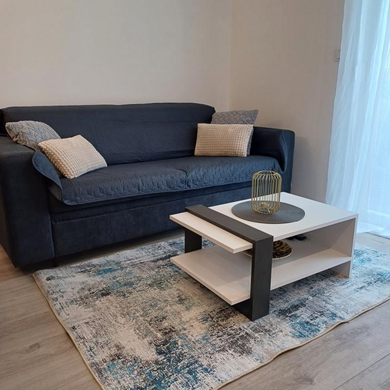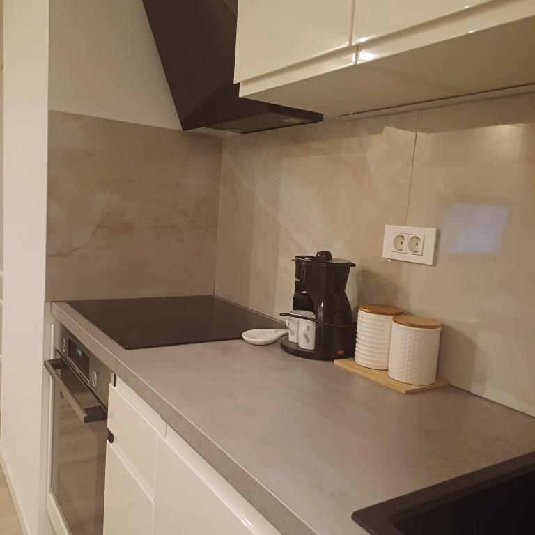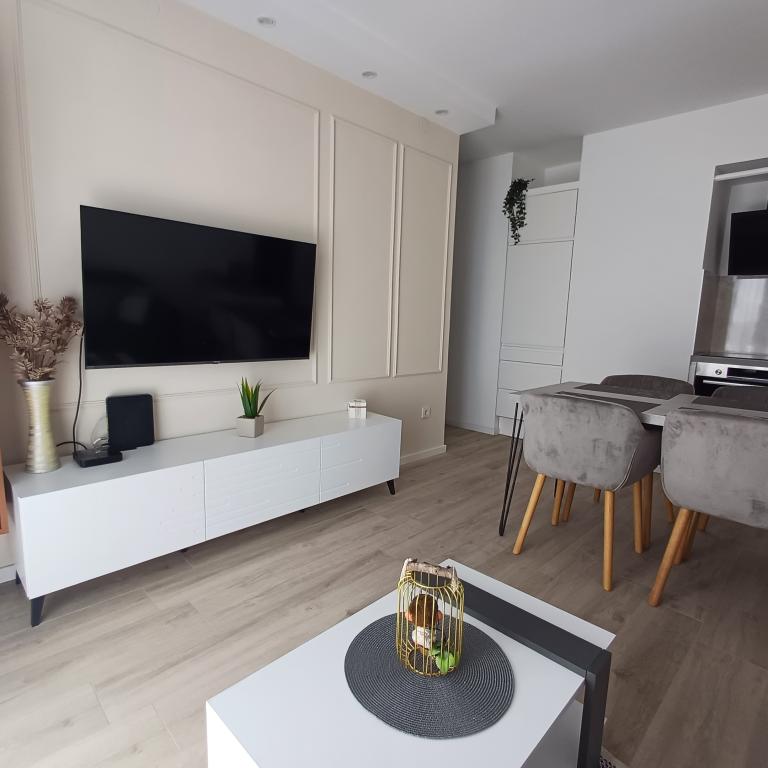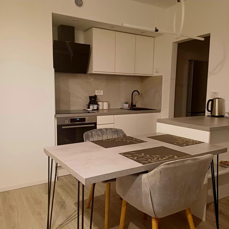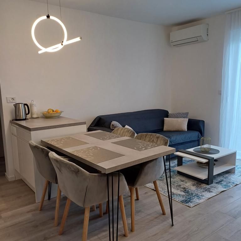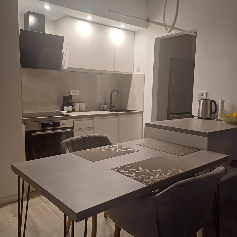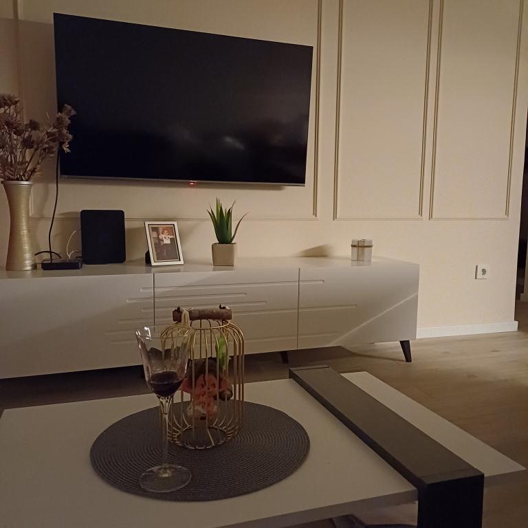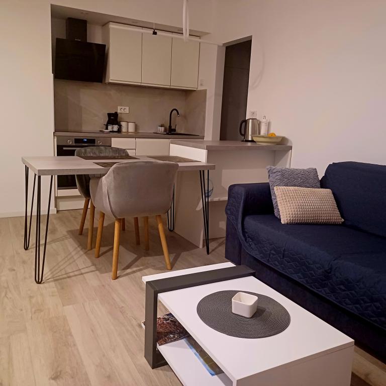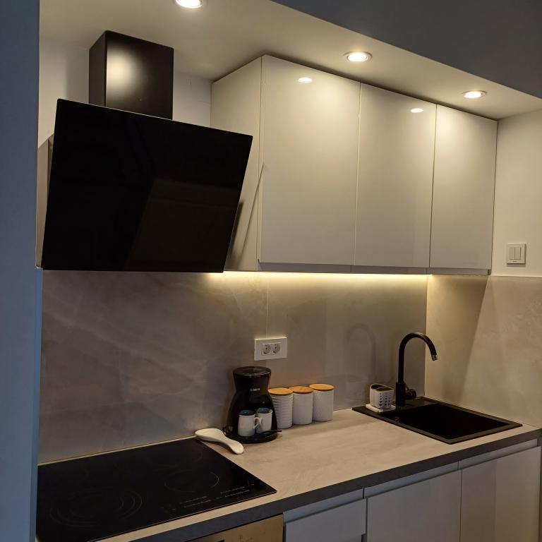 Luksusowy apartament znajduje się na 10. piętrze budynku mieszkalnego w Szybeniku, w doskonałej lokalizacji, 20 minut spacerem od centrum starego miasta i miejskiej plaży Banj. Luksusowe zakwaterowanie z balkonem z pięknym widokiem na morze i miasto zapewnia gościom przyjemny i relaksujący pobyt. Mieszkanie składa się z przestronnej sypialni, przedpokoju, łazienki z kabiną prysznicową, suszarką do włosów i pralką. Salon i jadalnia znajdują się w przestrzeni z nowoczesną kuchnią wyposażoną na krótki lub długi pobyt i znajdującą się w niej naczynia, przybory kuchenne, kuchenka, piekarnik, zmywarka, lodówka, czajnik i ekspres do kawy. Apartament jest klimatyzowany, a goście mają dostęp do telewizji i bezpłatnego Wi-Fi. Parking publiczny znajduje się przed samym budynkiem. Zaraz po wyjściu z budynku i przejściu na drugą stronę ulicy, w odległości 30 m znajduje się sklep spożywczy, apteka i kawiarnia oraz bank, poczta, pizzeria, siłownia, salon fryzjerski, centrum handlowe, dworzec autobusowy , przystań dla łodzi znajdują się w odległości 500 m - 700 m.