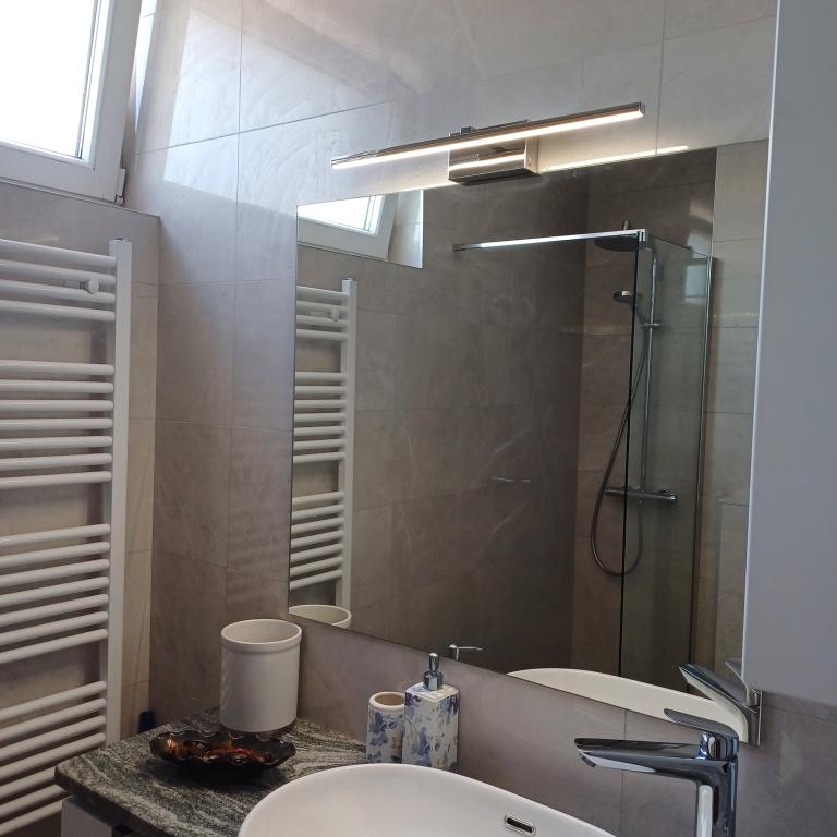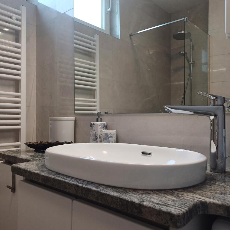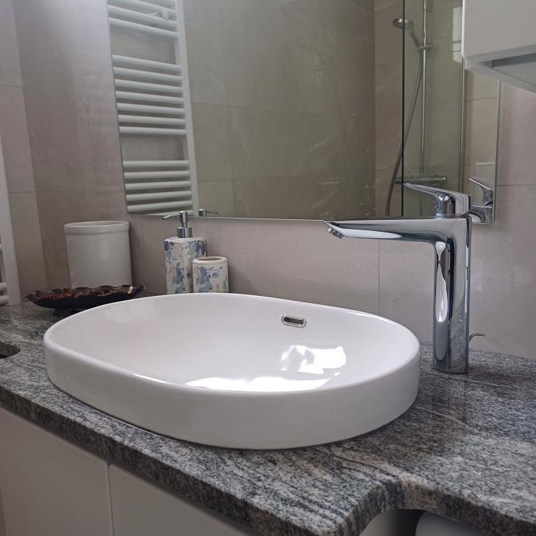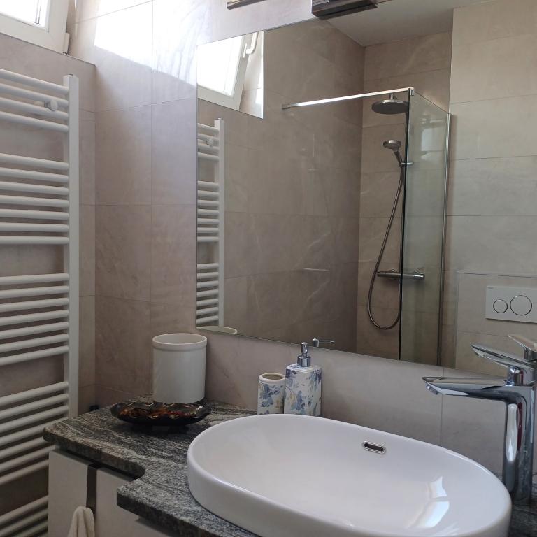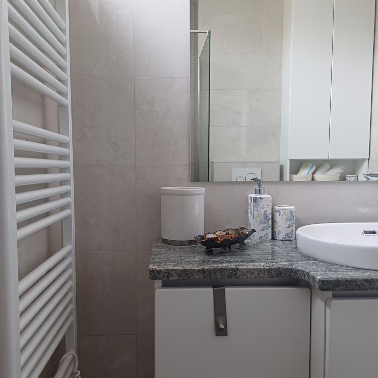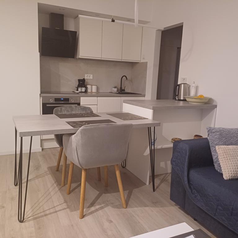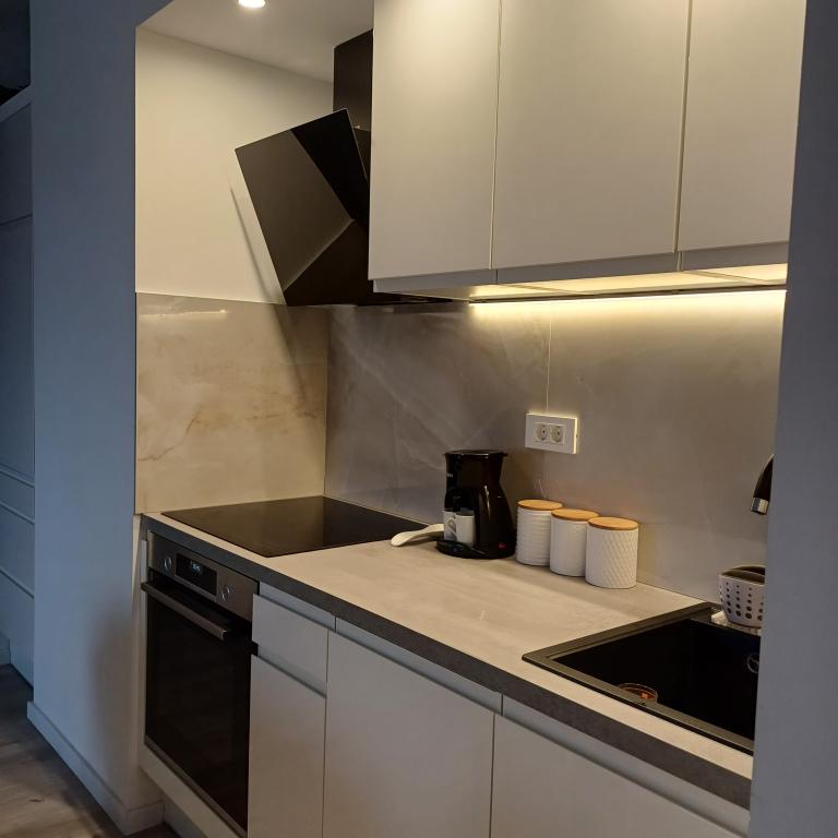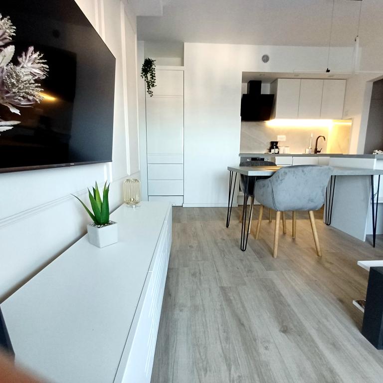 Luksusowy apartament znajduje się na 10. piętrze budynku mieszkalnego w Szybeniku, w doskonałej lokalizacji, 20 minut spacerem od centrum starego miasta i miejskiej plaży Banj. Luksusowe zakwaterowanie z balkonem z pięknym widokiem na morze i miasto zapewnia gościom przyjemny i relaksujący pobyt. Mieszkanie składa się z przestronnej sypialni, przedpokoju, łazienki z kabiną prysznicową, suszarką do włosów i pralką. Salon i jadalnia znajdują się w przestrzeni z nowoczesną kuchnią wyposażoną na krótki lub długi pobyt i znajdującą się w niej naczynia, przybory kuchenne, kuchenka, piekarnik, zmywarka, lodówka, czajnik i ekspres do kawy. Apartament jest klimatyzowany, a goście mają dostęp do telewizji i bezpłatnego Wi-Fi. Parking publiczny znajduje się przed samym budynkiem. Zaraz po wyjściu z budynku i przejściu na drugą stronę ulicy, w odległości 30 m znajduje się sklep spożywczy, apteka i kawiarnia oraz bank, poczta, pizzeria, siłownia, salon fryzjerski, centrum handlowe, dworzec autobusowy , przystań dla łodzi znajdują się w odległości 500 m - 700 m.