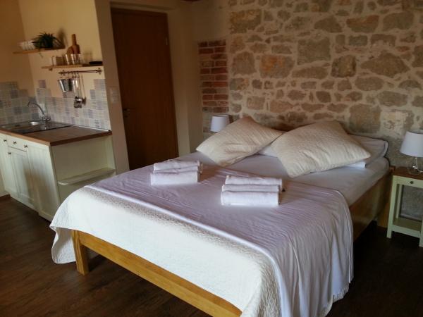 Dom z sześciu apartamentów typu studio zlokalizowane w pobliżu zabytkowego miasta Szybenik. Willa znajduje się w cichej i spokojnej rogu miasta w zaledwie dwie minuty spacerem do plaży. Wszystkie apartamenty są całkowicie nowe. Kamienne ściany, drewniane belki i podłogi z wielu elementów autentycznych i rustykalne oferują wyjątkową atmosferę Dalmacji.