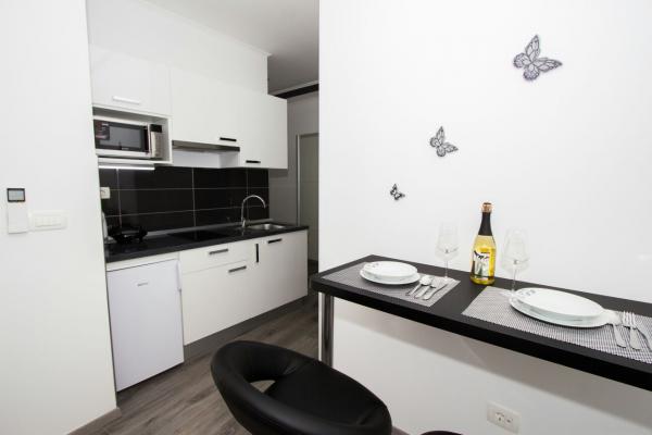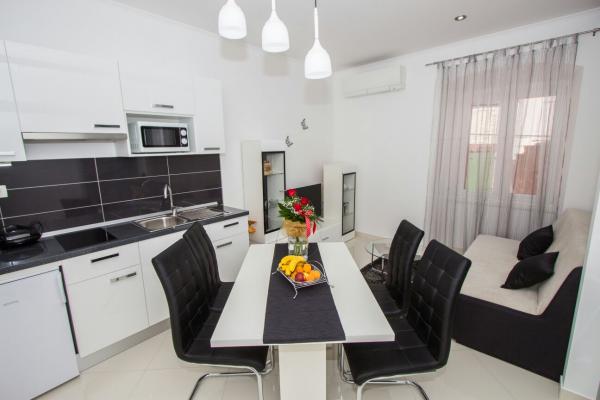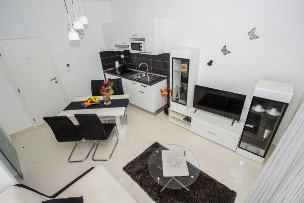 Nowe nowocześnie urządzone apartamenty w Sibenik, blisko katedry St. James. Składa się z kuchni, salonu, sypialni i łazienki. Apartamenty znajdują się w bliskiej odległości od sklepów, restauracji, banków, urzędu pocztowego. Banj Beach znajduje się w odległości 500 metrów. W pobliżu dostępny jest parking publiczny i nie trzeba zarezerwować.