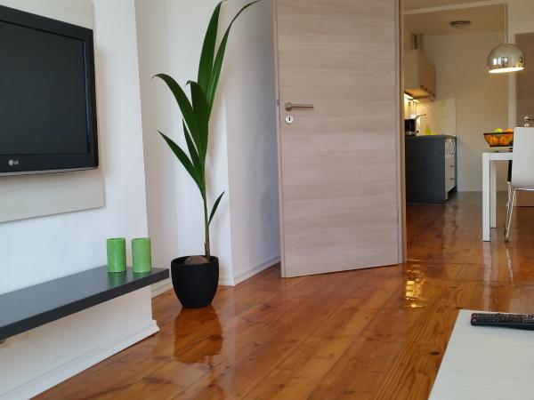 Nowoczesny apartament z pięknym widokiem na promenadę. Jest bardzo czysty i ładnie urządzony, a lokalizacja jest świetna (w kilka minut spacerem można dotrzeć do sklepów, piekarni, promu...). Do dyspozycji Gości jest wspólny pokój z pralką i zmywarką, co jest bardzo praktyczne i sprzyja relaksowi. Właściciele są bardzo mili i chętni do pomocy, wszelkie pochwały i rekomendacje dla tego apartamentu!
