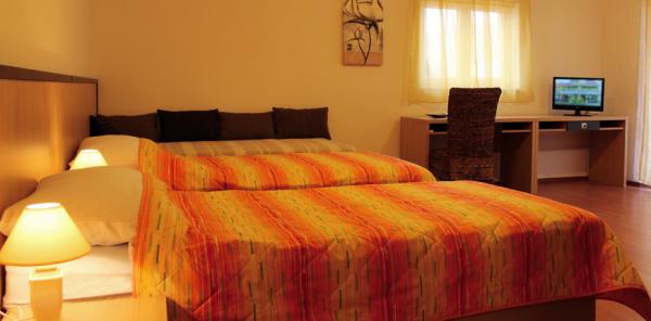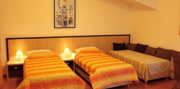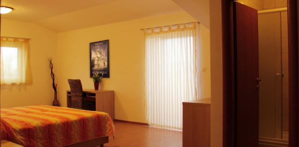 Michael Pokój jest umirnoj czwarty Dalmacija tylko kilka minut od chronionego przez UNESCO, w pobliżu centrum morskich Prgin jak również centrum handlowe starego miasta. Nowo wybudowany obiekt ma urządzone według standardów hotelu 19 pokoi i restauracja z 164 miejscami i odkryty taras z 150 miejsc. Michael Restauracja oferuje szeroki wybór oryginalnych dań Dalmacji oraz duży wybór win chorwackich. Posiadamy również salę konferencyjną na 300 miejsc, sala gimnastyczna idealna do treningu i rekreacji, piłka nożna, tenis stołowy, ścieżka rowerowa promenada Antoniego. St Promenada. Anthony rozciąga się od pokojowej Michael Sibenik kanału wzdłuż twierdzy św Mikołaja, i jest idealny dla korzystających z widoku pełen naturalnego piękna. Recepcja jest 0-24 godzin.