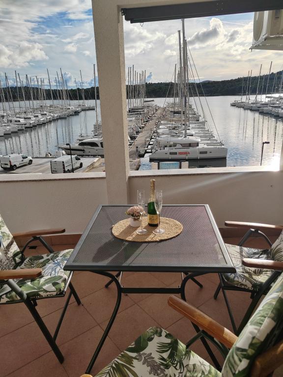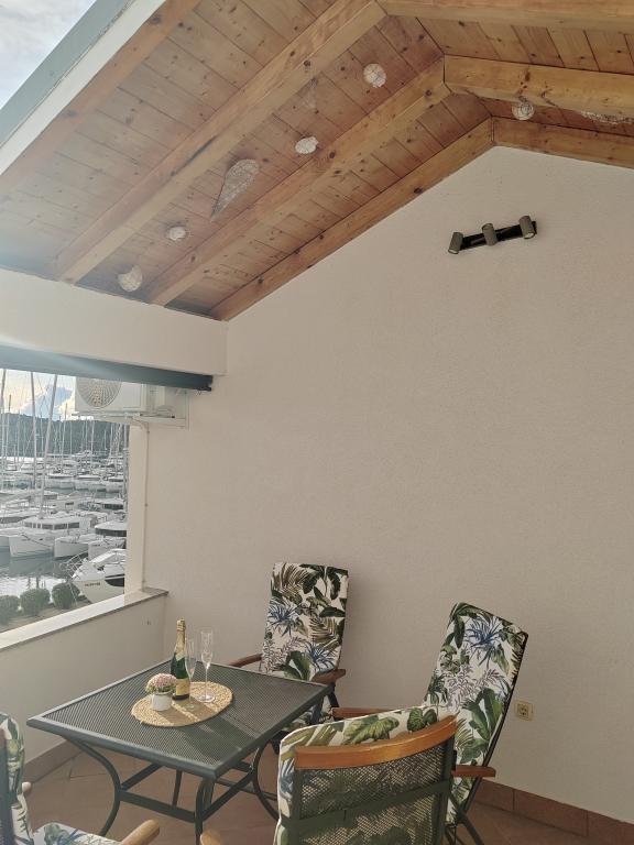Dom położony jest na półwyspie Mandalina w Szybeniku, z widokiem na morze (marina jachtowa). Oferuje dwie sypialnie, dwie łazienki, salon, jadalnię z kuchnią oraz taras z prysznicem na świeżym powietrzu. 5 minut jazdy samochodem do centrum miasta i supermarketu, 10 minut jazdy do najbliższej plaży.