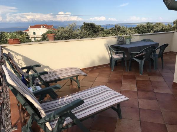 Apartament TENA (52 m2) znajduje się na pierwszym piętrze nowego domu rodzinnego. Jest w pełni umeblowane i wyposażone (klimatyzacja i Internet). Istnieją dwie sypialnie z 2 łóżkami każda, a dodatkowe łóżko można wykorzystać w salonie. Kuchnia jest przestronna, wyposażona we wszystkie niezbędne sprzęty. Z przestronnego tarasu roztacza się piękny widok na morze, wyspy Olib i Pag. Do dyspozycji gości kamienny grill na podwórku. Mieszkanie znajduje się około 200 metrów od morza. Odległość od centrum miasta (sklepy, restauracje, poczta i kawiarnie) wynosi około 3-5 minut spacerem, a do zachodniego wybrzeża Silby i pięknych piaszczystych i kamienistych plaż można dojść w 5-10 minut.