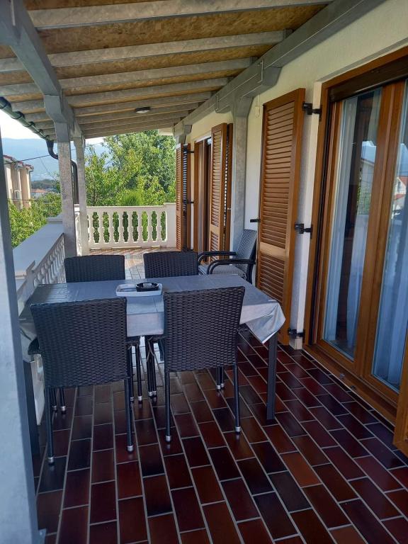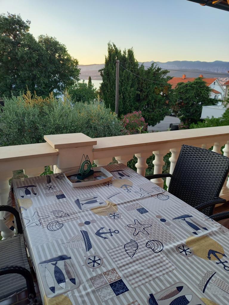 Do wynajęcia jest 80-metrowy apartament w pięknym miasteczku Šilo, pełnym zieleni, na wyspie Krk, na pierwszym piętrze rodzinnego domu wakacyjnego, z przestronnym tarasem i widokiem na morze. Zakwaterowanie jest kategoryzowane dla 5+1 osób. Składa się z jednego pokoju trzyosobowego, jednego pokoju dwuosobowego i jednego dodatkowego łóżka. Odległość od pierwszej plaży wynosi 200 metrów, od piaszczystej plaży 300 metrów, a od centrum miasta 200 metrów. Parking znajduje się na ogrodzonym podwórku.