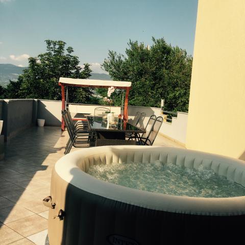 W pełni umeblowane Odnowione apartamenty mieszczą się w jednym budynku, gdzie ty i piekarnia, tak, że rano masz świeże pieczywo i wypieki, plaża znajduje się zaledwie 300 metrów. Inne urządzenia w mieszkaniach mają żelazko, deska do prasowania, suszarkę do włosów, klimatyzację, TV-SAT. W przedniej części apartamentów posiada miejsce parkingowe. W apartamentach zapewniamy akcesoria, które mogą być potrzebne w trakcie pobytu (papier toaletowy, szampon, suszarka do włosów, ręczniki) Kuchnia jest w podstawowy sprzęt do gotowania, takie jak garnki, patelnie, sztućce, a także kilka podstawowych składników są dostępne (sól, pieprz, cukier, olej, ocet). Wszystkie apartamenty posiadają dostęp do Internetu oraz klimatyzację oraz telewizor LCD.