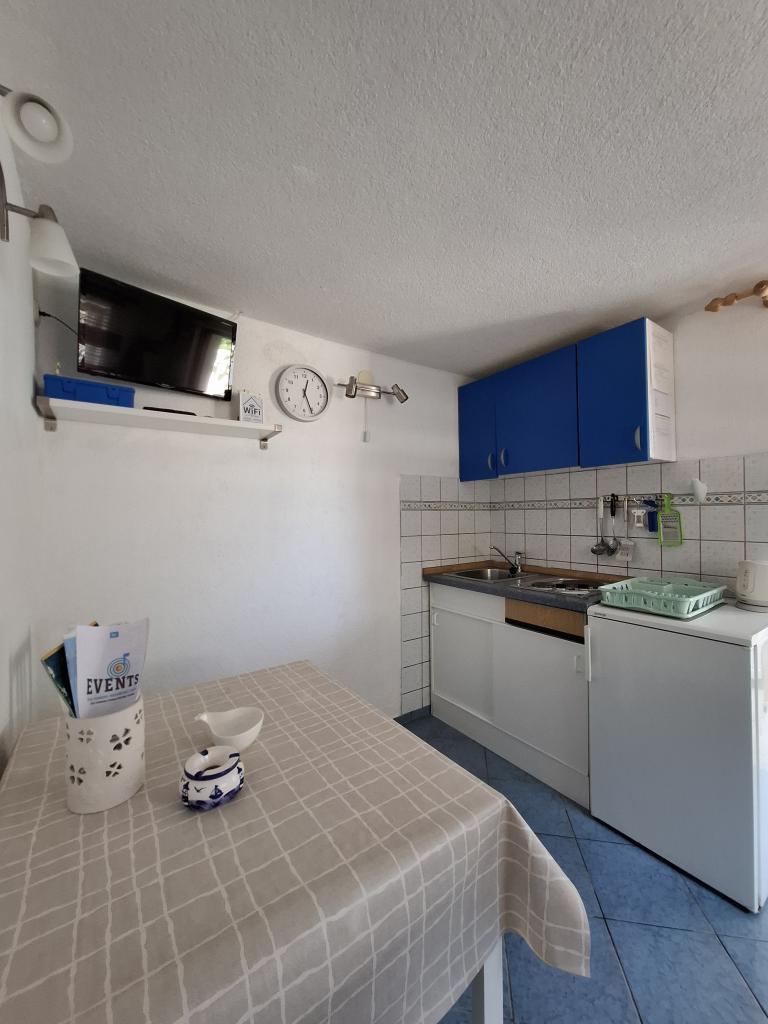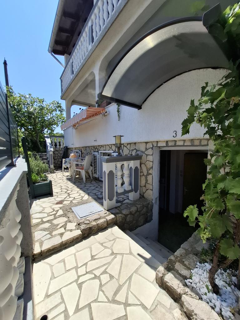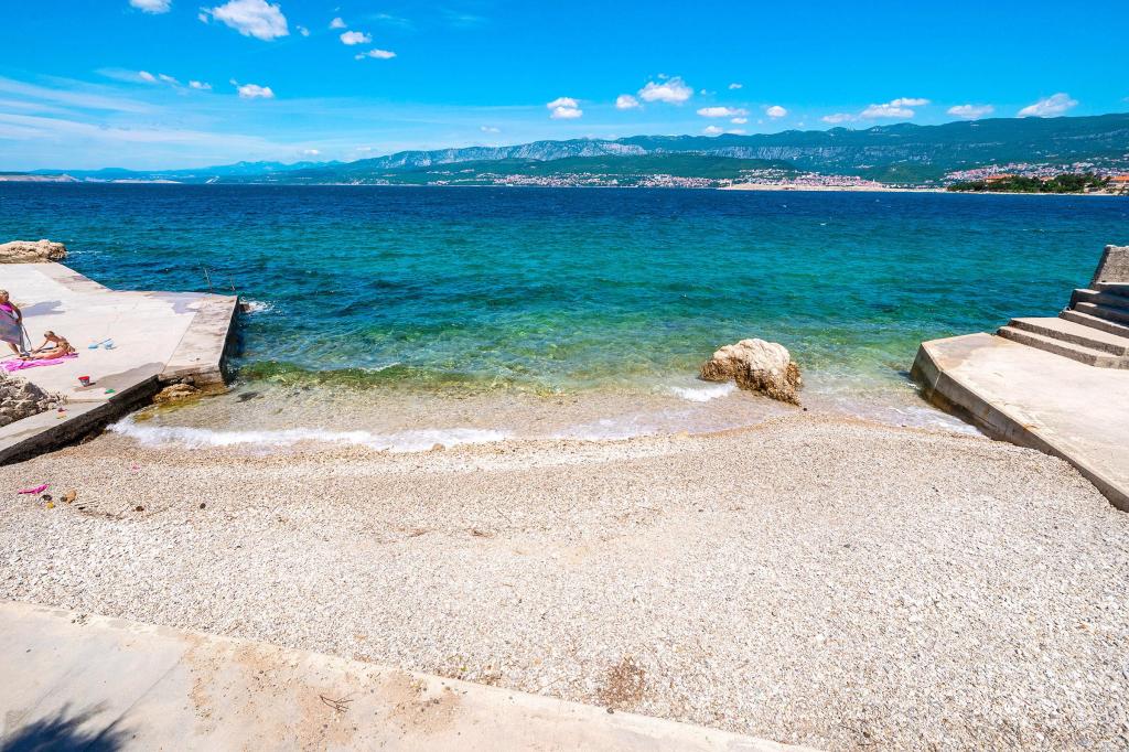 Apartamenty znajdują się w cichej ulicy w Šilo, na pierwszym piętrze domu. Obiekty są sklasyfikowane na 2 gwiazdki i składają się z salonu z małą kuchnią, sypialni i łazienki. Mieszkanie prowadzi na piękny taras z widokiem na morze. Apartamenty wyposażone są w ekspres do kawy, kuchenkę mikrofalową, lodówkę, klimatyzację, antenę satelitarną oraz bezpłatny bezprzewodowy dostęp do Internetu. Odległość do zadbanej piaszczystej i betonowej plaży wynosi 200m. Na podwórku znajduje się bezpłatny parking dla gości oraz możliwość korzystania z grilla. W dolnej części domu znajduje się kolejny apartament z 3 gwiazdkami. Nieruchomość posiada własny taras, kuchnię, sypialnię i łazienkę, lodówkę, ekspres do kawy, lodówkę, telewizor, żelazko, osobne wejście oraz możliwość korzystania z bezpłatnego Wi-Fi. Miejsce parkingowe znajduje się również na podwórku domu.