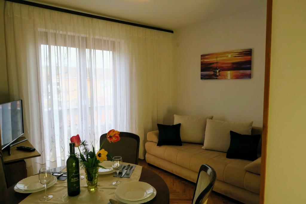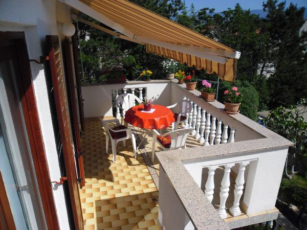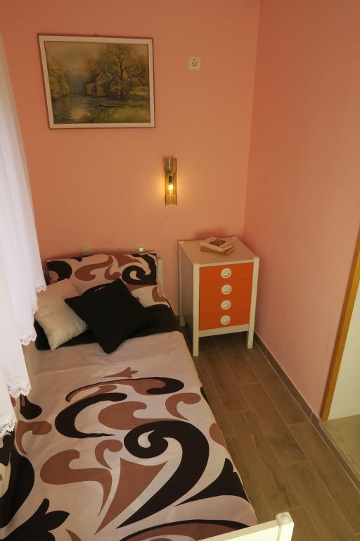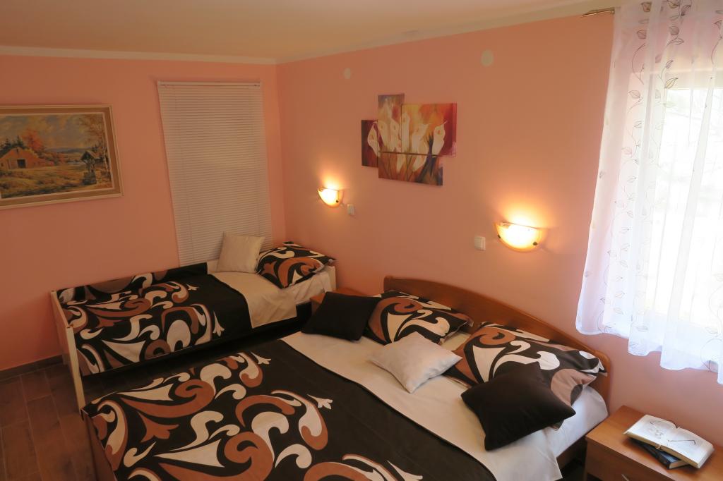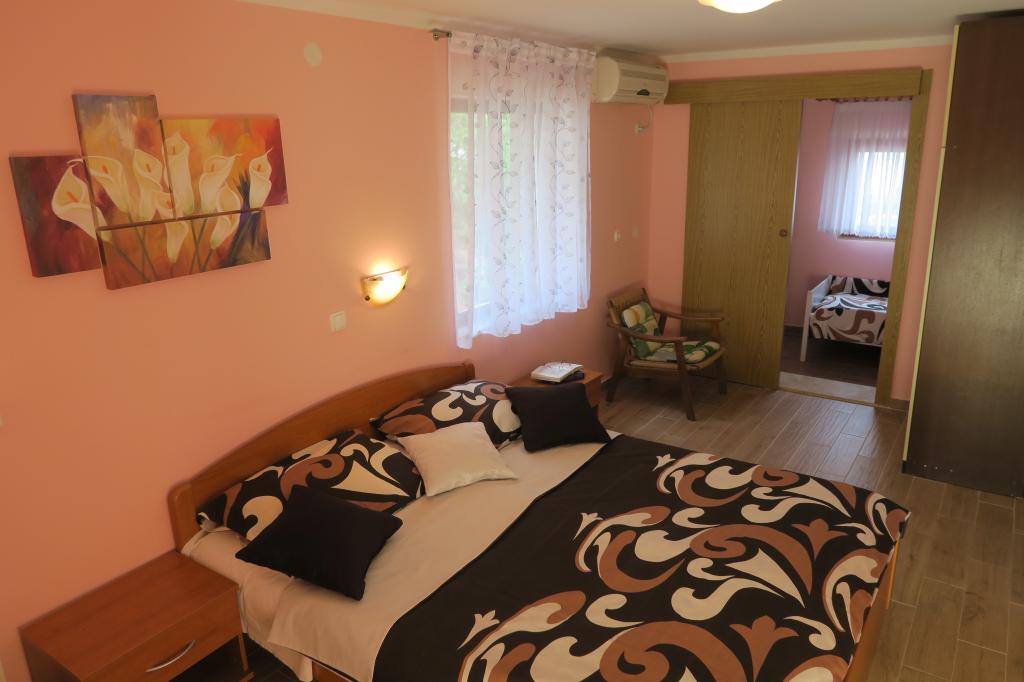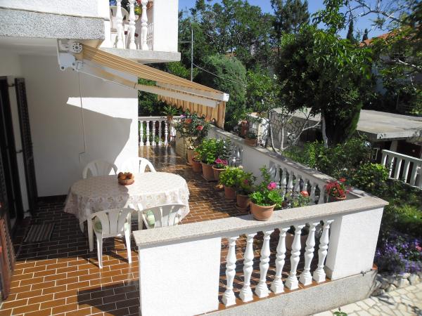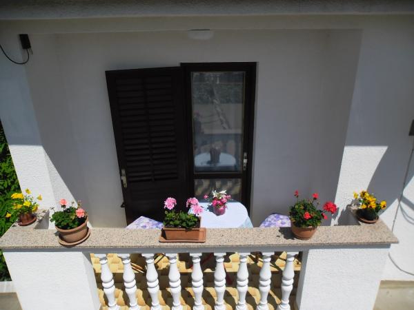 Dom położony jest około 350m od morza, ma ładne balkony i tarasy, grill i duży parking. Dom posiada dwa apartamenty dla dwóch lub trzech osób z dostawkami w obu apartamentów. Dom jest w parku, z dala od morza około 350m. Na podwórku jest grill. Apartamenty posiadają telewizor i telewizję satelitarną, klimatyzację, internet, wszystkie pościel i wyposażone kuchnie i łazienki. Oba apartamenty posiadają taras oraz miejsce parkingowe.