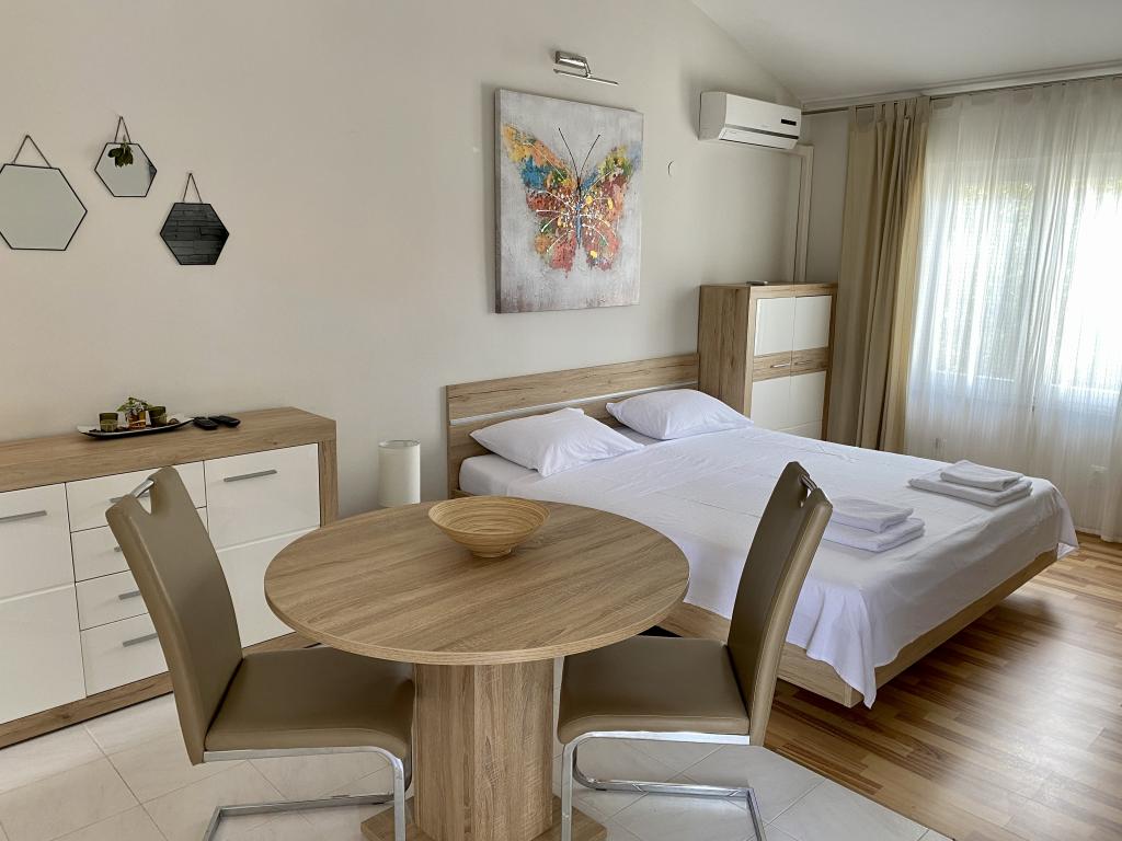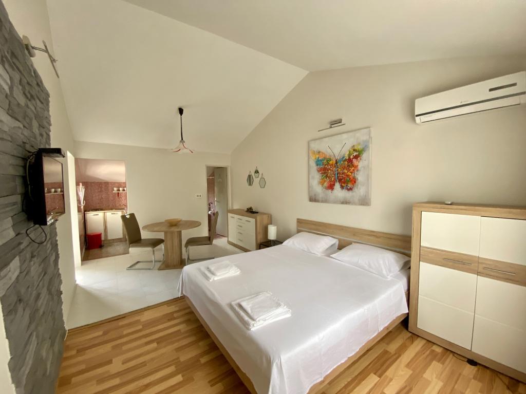 Dom położony jest w spokojnej okolicy, w pierwszym rzędzie od morza, niecałą minutę spacerem od plaży, restauracji typu fast food i innych udogodnień oferowanych na plaży. W domu znajdują się trzy apartamenty, z czego apartamenty M1 i M2 znajdują się na pierwszym piętrze, a apartament M3 na parterze. Wszystkie apartamenty są w pełni i nowocześnie wyposażone.