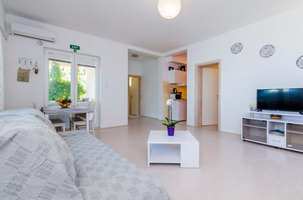 Apartamenty Kola to jedne z niewielu obiektów noclegowych, które rzeczywiście znajdują się NA PLAŻY. Plaża jest świetna, odpowiednia nawet dla najmniejszych dzieci. Składa się z małych kamieni, dzięki czemu nie ma potrzeby używania butów do wody. Nie ma tłumu. Apartamenty Kola są przestronne, w pełni wyposażone, klimatyzowane i czyste. Górne, większe mieszkanie posiada ładny taras z pięknym widokiem na morze. Zachwycił nas także grill na podwórku, który jest przestronny, z leżakami do podziwiania lasu fal. Szczególnie chcielibyśmy podkreślić wyjątkową życzliwość i serdeczność gospodarza - absolutnie przekroczył oczekiwania w reagowaniu na nasze potrzeby i życzenia. Na pewno wrócimy.