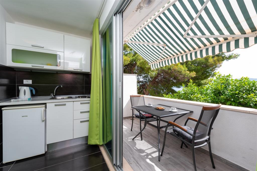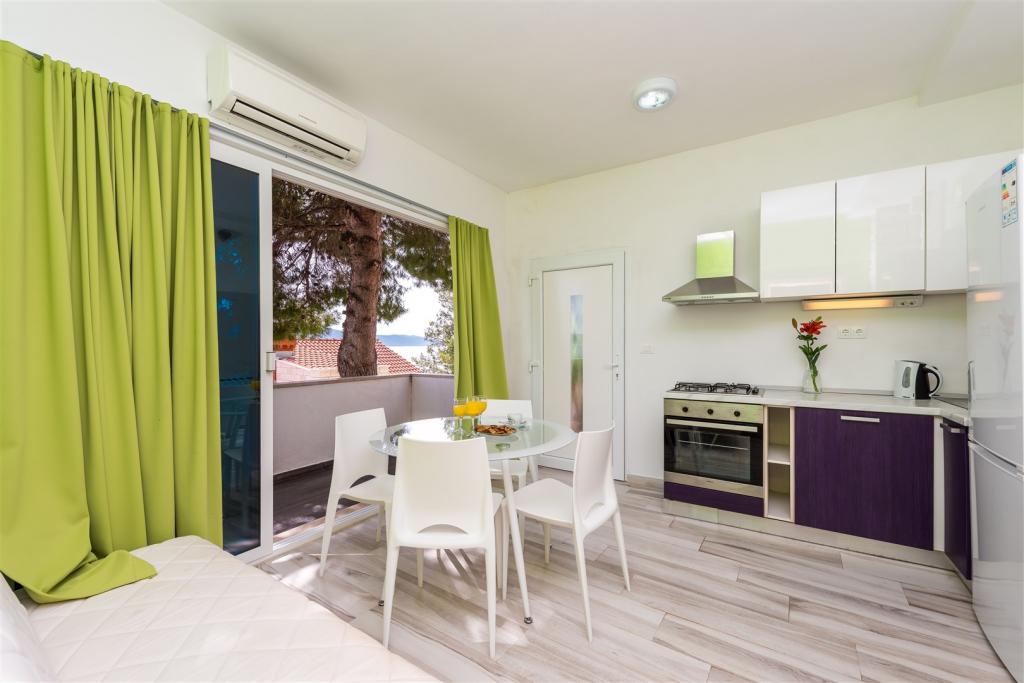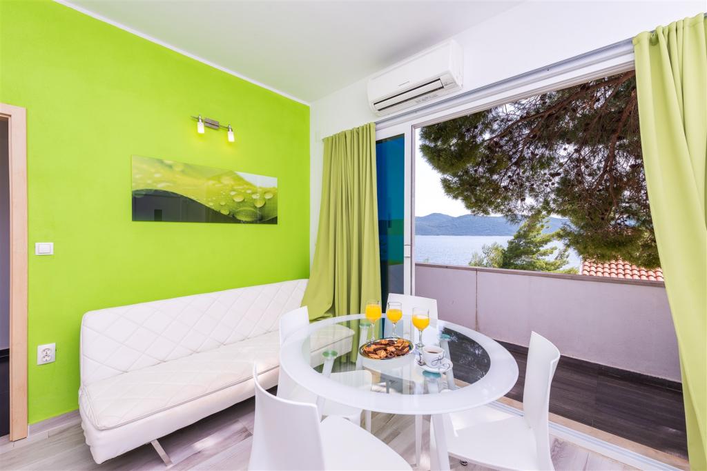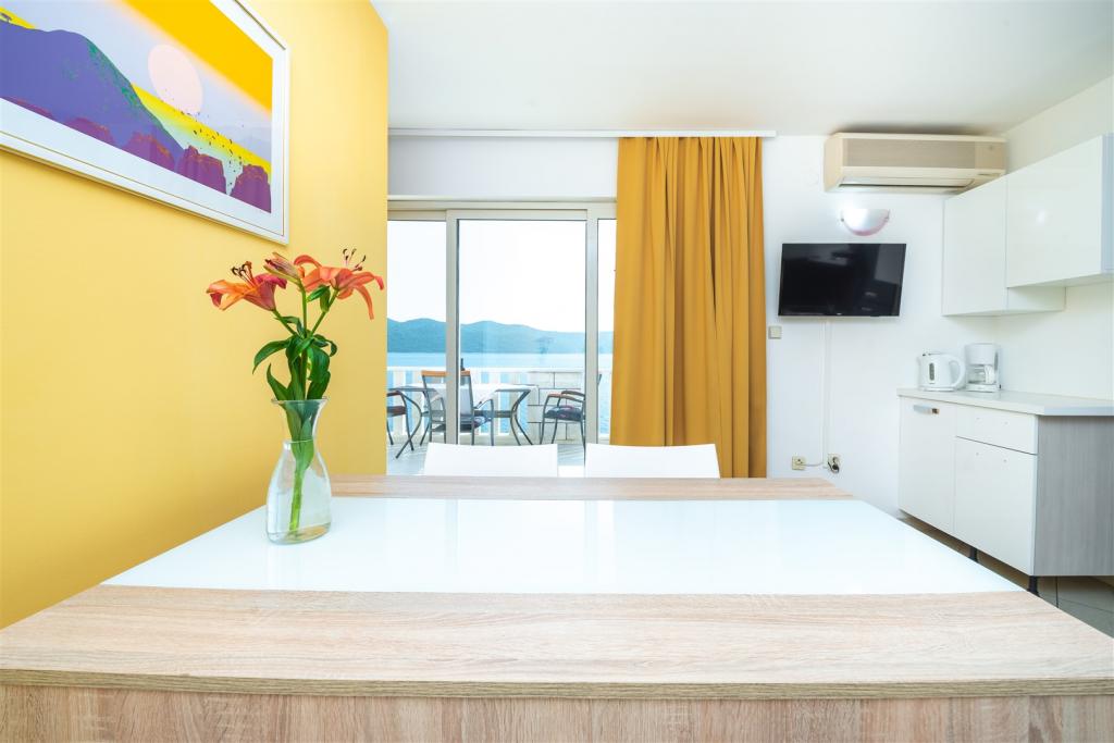Villa Ratac jest idealnie położona na słonecznej plaży, otoczona bujną roślinnością sosen i drzew oliwnych. Apartament Palms ma otwarty widok na morze, 2 tarasy, oddzielną sypialnię, 2 łazienki, salon z kuchnią. Ogólnie bardzo wygodny apartament o powierzchni 80 m2, optymalny dla 4-5 osób.
