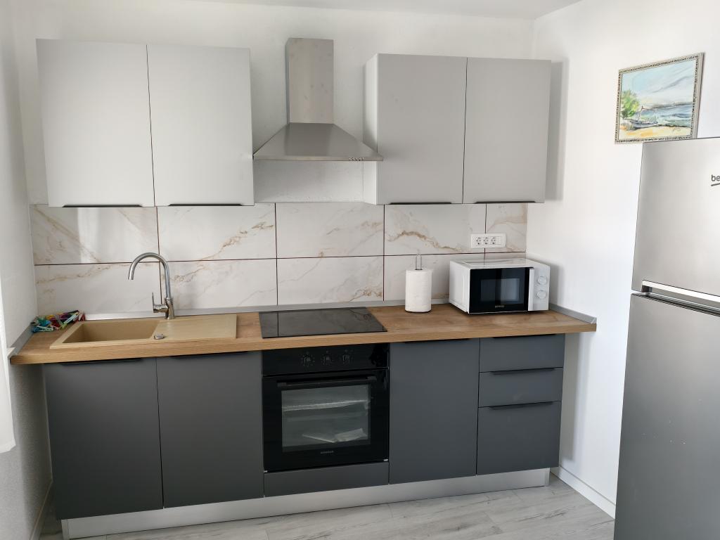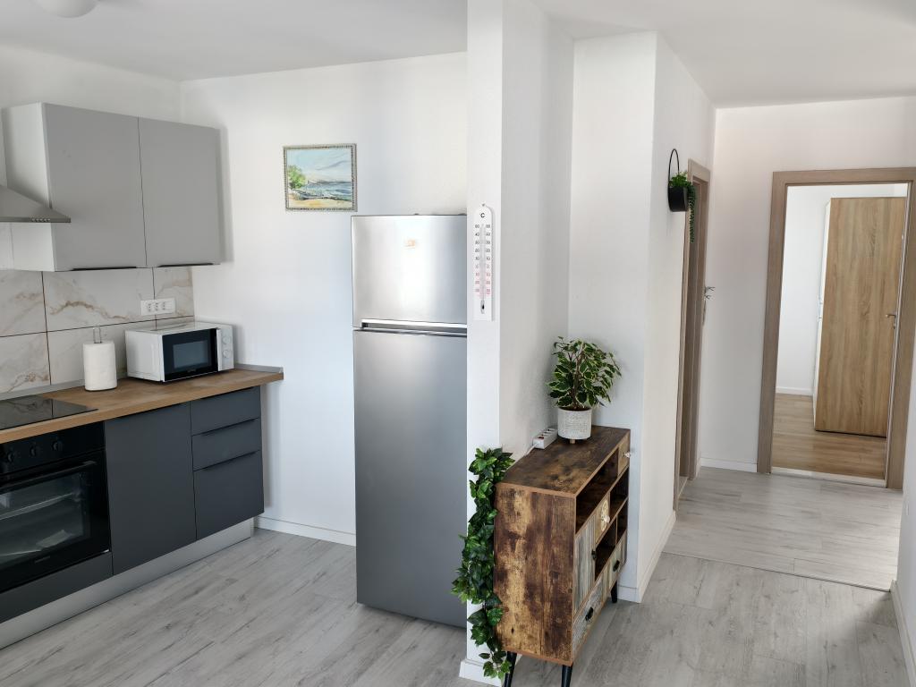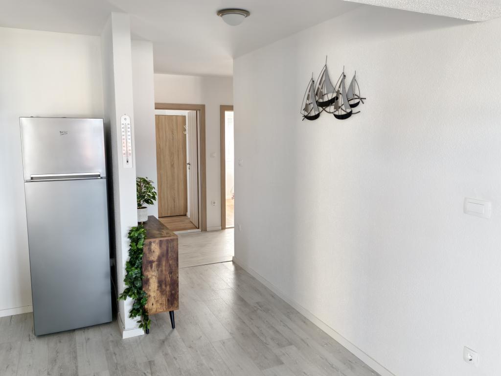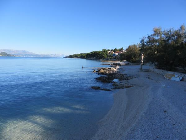 Bardzo polecam ten obiekt dla średnio wymagających. Jest bardzo czysto, duża kuchnia w której jest praktycznie pełne wyposażenie jak w normalnym domu (jest nawet blender). Sypialnia duża, wstawiliśmy łózeczko turystyczne i było jeszcze miejsce do zabawy dla dziecka, pościele praktycznie nowe, duże wygodne łózko. Łazienka z prysznicem. Do tego jest jeszcze mini salon z kanapą i dużym tv jeśli ktoś lubi. I najważniejsze, morze jest zaraz przy obiekcie, wychodzi się z ogródka prosto na plaże. Plaża jest posypana drobnym kamieniem, więc idealnie dla dziecka. Polecam ten apartament bo to jak mieszkanie, zadbany, czysty, nowe meble, bez schodów i zaraz przy morzu.