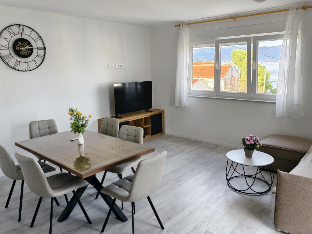 Apartament Nakir położony jest w drugim rzędzie od morza, 100 metrów od plaży. Nieruchomość położona jest w spokojnej okolicy wyspy Ciovo, 10 minut spacerem do centrum. Wyspę Čiovo można połączyć ze Splitem i Trogirem mostem oraz regularną linią wodną; podróż trwa pół godziny. Mieszkanie jest w pełni wyposażone.