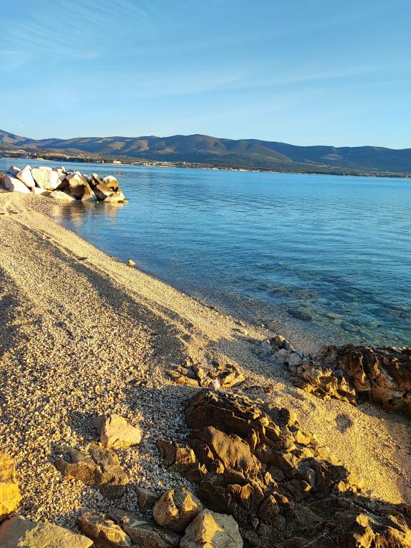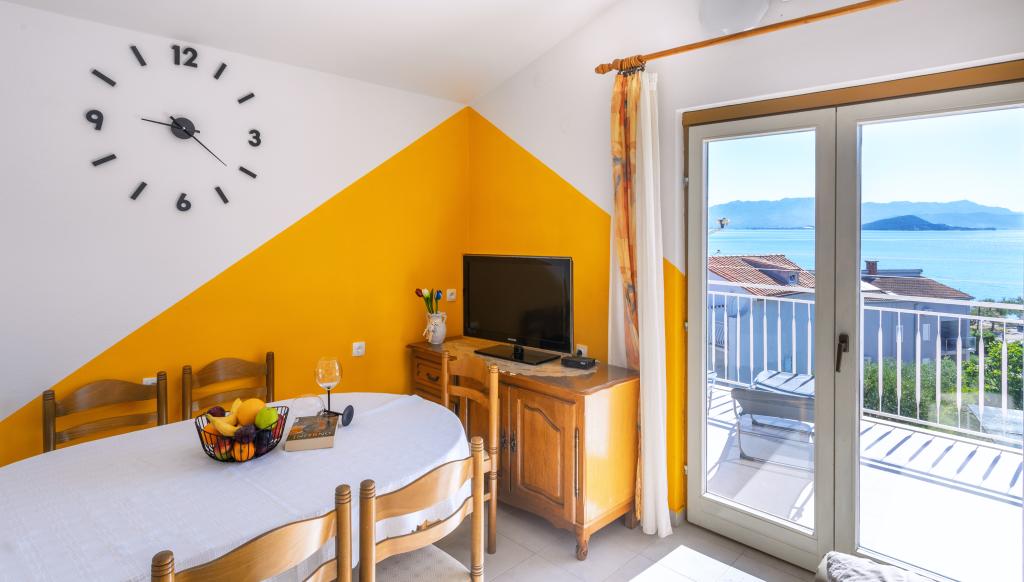Apartament Stella znajduje się w spokojnej miejscowości turystycznej Slatine na wyspie Čiovo. Znajduje się zaledwie 80 metrów od morza i oferuje piękny widok na miasto Split i zatokę Kaštela. Właśnie z tego powodu obiekt ten jest idealnym miejscem na przyjemne i relaksujące letnie wakacje.