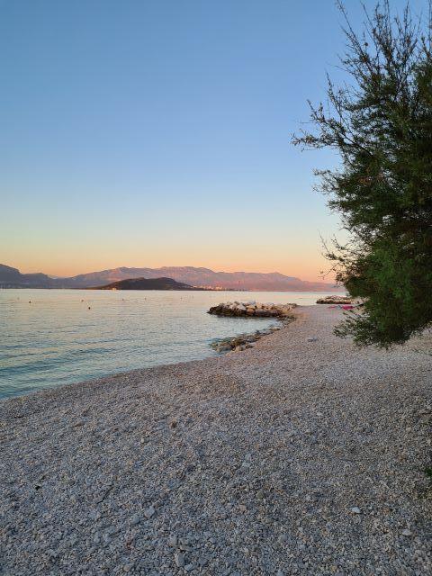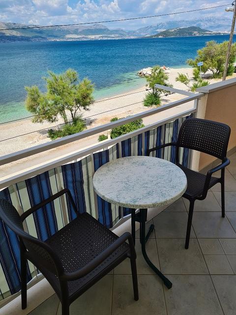 Trzygwiazdkowe apartamenty Boban znajdują się w miejscowości Slatine na wyspie Čiovo, 10 metrów od morza. Przed apartamentami znajduje się kamienista plaża, idealna do pływania. Z tarasu apartamentu roztacza się piękny widok na plażę, morze, Zatokę Kaštelańską, Split, Trogir i samo miasto Slatine. Apartamenty są komfortowe, wyposażone w telewizję satelitarną, internet i klimatyzację. W ogrodzie domu znajduje się letni prysznic oraz grill, z którego mogą korzystać goście. Goście apartamentów mają do dyspozycji parking. Slatine to mała wioska rybacka, w której nadal można kupić świeże ryby, lokalne warzywa i oliwę z oliwek. Latem odbywają się festiwale i imprezy sportowe. Restauracje, pizzerie, tawerny, kawiarnie i sklepy znajdują się w samym centrum miasta, zaledwie 5 minut spacerem wzdłuż morza od domu rodziny Boban. Na południu wyspy Čiovo, zaledwie 4 km dalej, znajduje się słynne sanktuarium Matki Bożej Prizidnickiej, które zdecydowanie warto odwiedzić. Slatine na wyspie Čiovo oddalone jest o 8 km od Trogiru i 35 km od Splitu – obu miast objętych patronatem UNESCO.