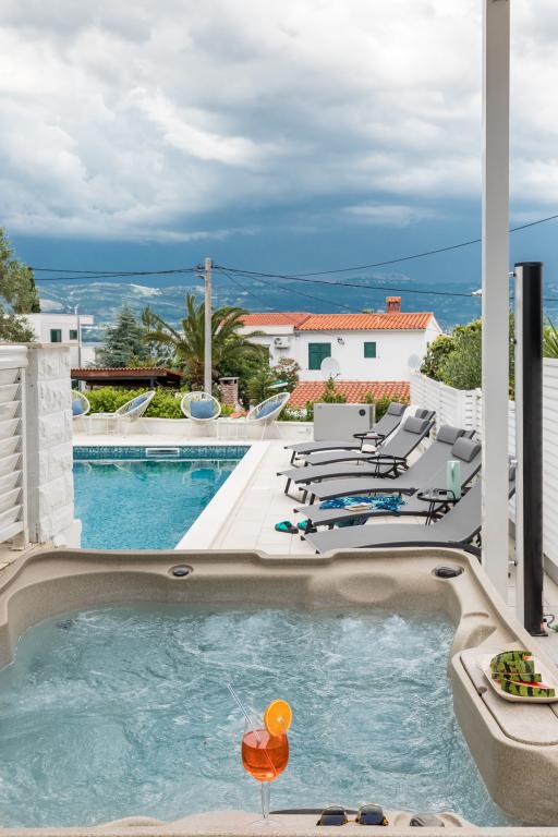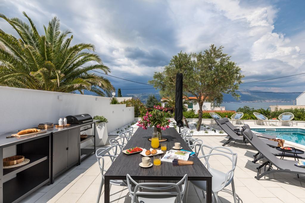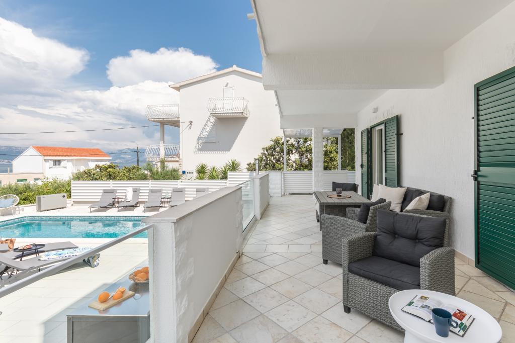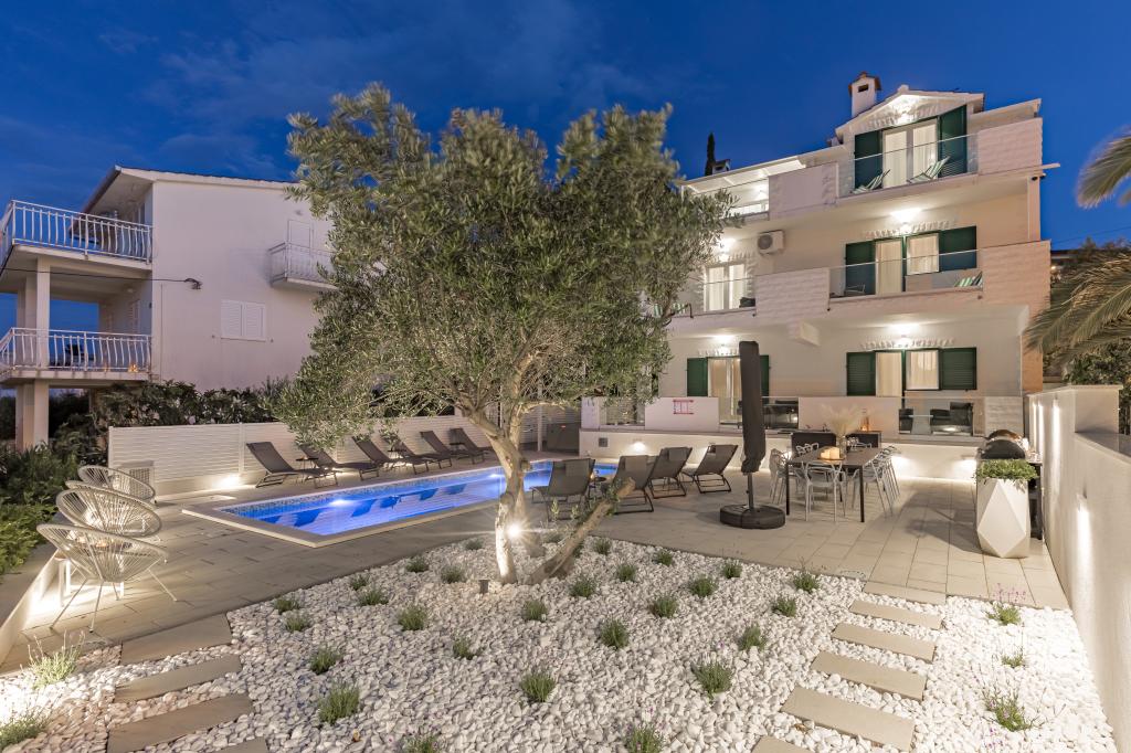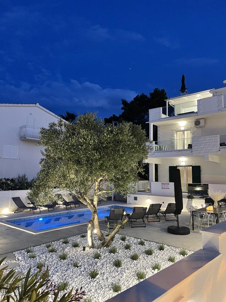 Właśnie wróciliśmy z naszego letniego kurortu Slatine. Aby uniknąć „szalonego tłoku” na chorwackiej autostradzie i przy punktach poboru opłat, z ciężkim sercem skróciliśmy nasz coroczny urlop o jeden dzień i rozpoczęliśmy od nowa w piątek. Z ciężkim sercem, ponieważ wszyscy byliśmy bardzo zadowoleni z tego pięknego zakwaterowania. Byliśmy 5 osób dorosłych i 3 dzieci w apartamentach A i E. Wszystko jest pięknie nowo umeblowane, pokoje duże więc każdy może cieszyć się swoją prywatnością. Świetny basen, a także wanna do masażu. Ładny stół z wygodnymi fotelami i dużą ilością leżaków. Obok basenu znajduje się mała kuchnia na świeżym powietrzu z 2 grillami węglowymi. Plaża z białymi kamykami znajduje się 2 minuty od hotelu i dlatego jest idealna dla dzieci i osób starszych. Nie jest tłoczno. W apartamentach mieszkają mili goście, a miejsc parkingowych jest wystarczająco dużo. W sumie wszystko, czego można sobie życzyć na udane wakacje, oprócz korków, ale po drugiej stronie ulicy, na kontynencie, znajduje się lotnisko w Splicie. W każdym razie bardzo dziękuję Marina za nasz piękny pobyt. Rodzina Schumich z Austrii