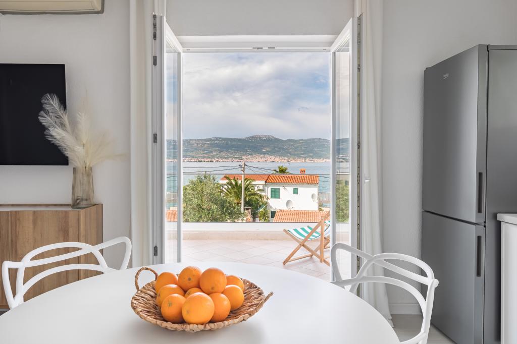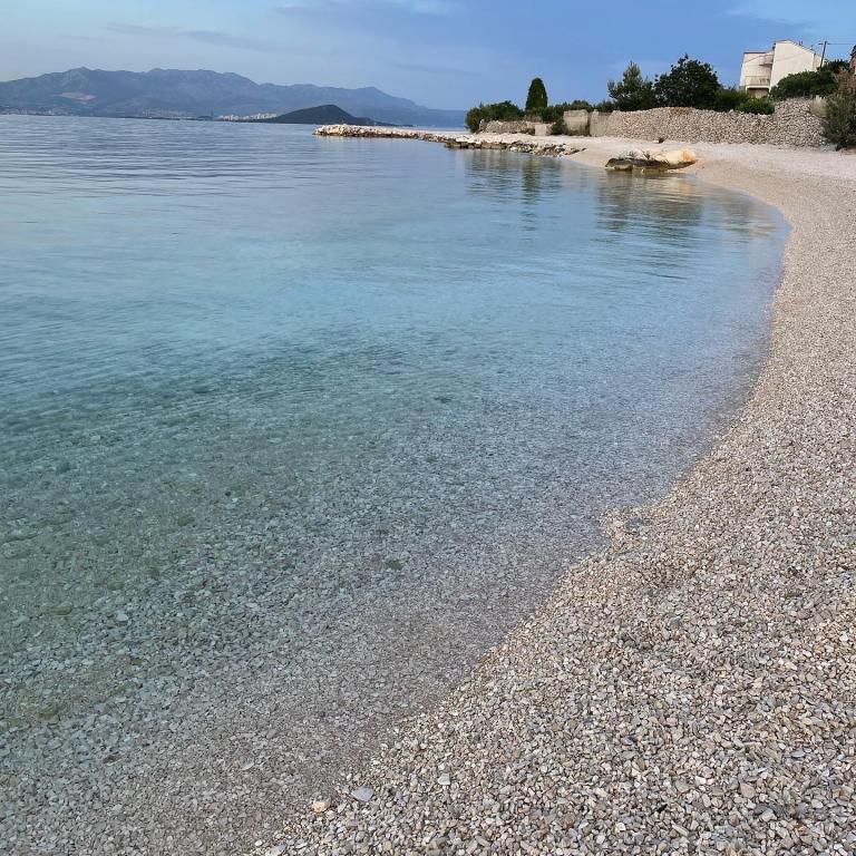 Ładne mieszkanie i czyste. Zatrzymaliśmy się tutaj na tydzień w połowie października jako pięcioosobowa rodzina z małymi dziećmi i jest to gorąco polecam ze względu na ładną i spokojną lokalizację tuż przy plaży. Wynajęliśmy samochód na lotnisku i będziesz go potrzebować na jednodniowe wycieczki do różnych miast, takich jak Trogir, Split, Omis i wodospady w Krka. Do wszystkich tych miejsc można dojechać samochodem w rozsądnej odległości. Zaledwie kilka minut spacerem od plaży znajduje się przyjemny bar, w którym można spędzić wspaniałe popołudnie. Marina to przyjazna gospodyni, która przyjęła nas po przyjeździe i pomogła nam udzielić niezbędnych wskazówek za pośrednictwem WhatsApp. Na pewno tu wrócimy!