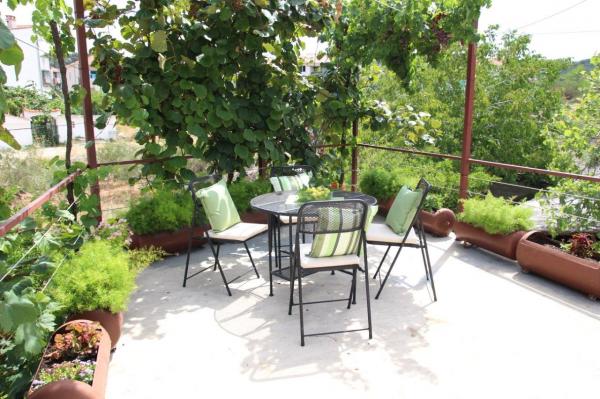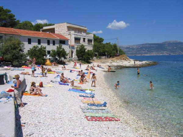 Apartamenty znajdują się w rodzinnym domu na prywatnej działce o powierzchni 2000 m2 porośniętej śródziemnomorską roślinnością, mandarynkami, pomarańczami, cytrynami, figami i oliwkami. Każdy apartament posiada duży taras w naturalnym cieniu winorośli ze stołem i krzesłami. Wszystkie apartamenty są w pełni umeblowane i wyposażone, więc jedyne czego potrzebujesz to ręczniki plażowe i higieniczne. Naturalna trawa w cieniu drzewa oliwnego jest odpowiednia dla małych dzieci do zabawy. Wszystkie apartamenty są klimatyzowane. Wspólny taras o powierzchni 150 m2 z grillem i stołem w naturalnym odcieniu kiwi jest do dyspozycji gości na ewentualne spotkania. Do dyspozycji Gości jest również prysznic na świeżym powietrzu i leżaki. Na terenie wszystkich apartamentów znajduje się również ogrodzony parking dla samochodów. Najbliższa plaża znajduje się 140 m od apartamentu. Słynna naturalna plaża Kava oddalona jest od apartamentu o 3 km. 5 minut od apartamentu znajduje się przystań łodzi turystycznej, która kilka razy dziennie łączy Slatine ze Splitem i Trogirem.