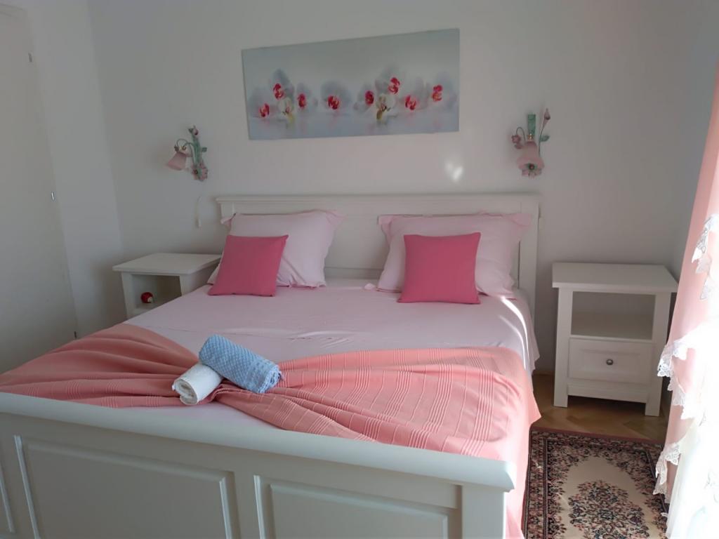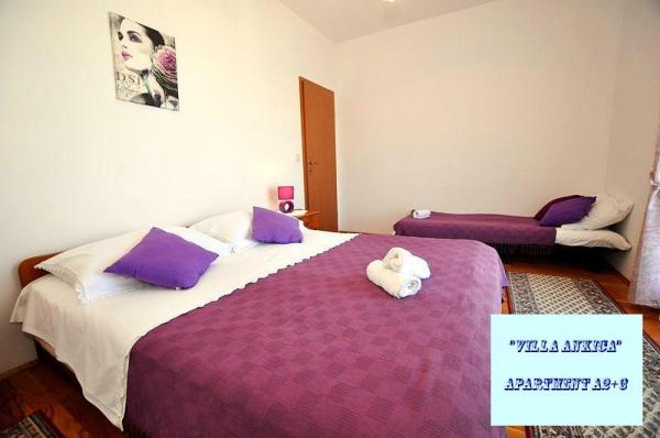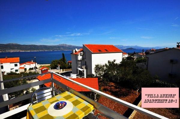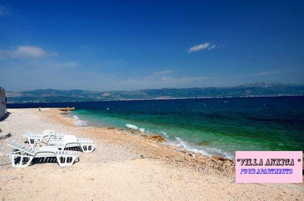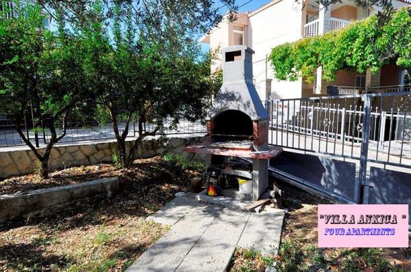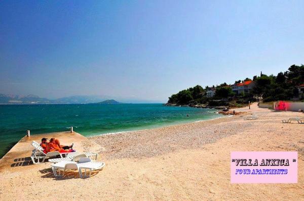 Villa Ankica znajduje się w miejscowości Slatine na wyspie Ciovo, 4,5 km od Trogiru, jednego z najpiękniejszych miast na wybrzeżu Adriatyku, które jest chronione przez UNESCO. Willa znajduje się około 1 godziny jazdy od Parku Narodowego Krka. Willa znajduje się na powierzchni 1100 metrów kwadratowych. Pojemność willi wynosi do 20 osób. Na parterze znajduje się mieszkanie A6. Na pierwszym piętrze są apartamenty A4j i aplikacja. A3 2. Na drugim piętrze jest aplikacja. A4. W spokojnym otoczeniu możesz cieszyć się wakacjami w jednym z naszych czterech nowoczesnych apartamentów z pięknym widokiem na morze. Każdy apartament jest klimatyzowany i wyposażony w telewizję satelitarną i duży taras. Podczas wakacji samochód, rower lub łódź będą bezpieczne na naszym dużym, zamkniętym parkingu. Na grillu w pięknym ogrodzie można przygotować dalmatyńskie specjały i skosztować lokalnych win, brandy, likierów i ekologicznej oliwy z oliwek.