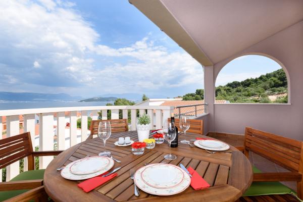 Poprzez krótką historię spotkaliśmy się z Villa Maris; dom rodzinny idealny na spokojny, spełniony rodzinny wypoczynek. Znajduje się w Slatine; 9 km od miasta Trogir, 100 m od plaży 1, 8 km od najpiękniejszej plaży (niezamieszkana) na wyspie, oferujemy 3 aplikacje, duży basen (9, 80x3, 50), ogród, miejsce parkingowe Każda aplikacja jest wyposażona w Wi Fi, taras z widokiem na morze. Pierwsza z nich znajduje się na wysokim parterze, 3 sypialnie, łącznie 6 łóżek, taras o powierzchni 35 m2, kuchnia ze wszystkimi potrzebami kuchennymi, łazienka. Drugi ap jest na pierwszym piętrze 3 pokoje 6 miejsc ogółem, kuchnia z salonem, łazienka i taras 25m2 jest trzecim na drugim piętrze. , nadaje się dla 6 osób, pokój dzienny, kuchnia, łazienka, taras 20m2. Wszystkie trzy ap są w pełni wyposażone; pralka (kuchnia / łazienka), łącze WiFi, TV SAT, klimatyzacja, kuchenka mikrofalowa, miejsce parkingowe.