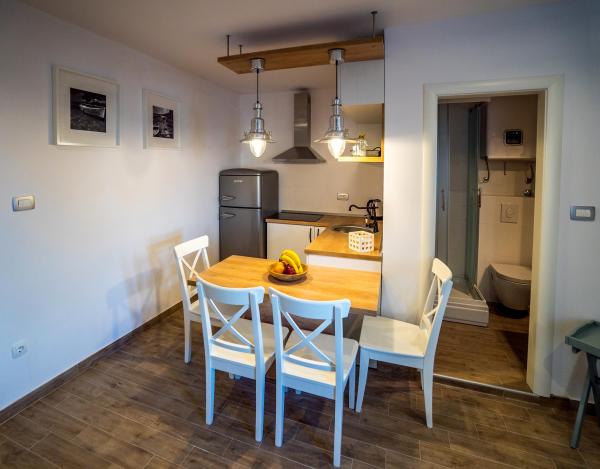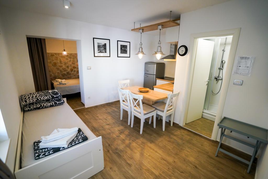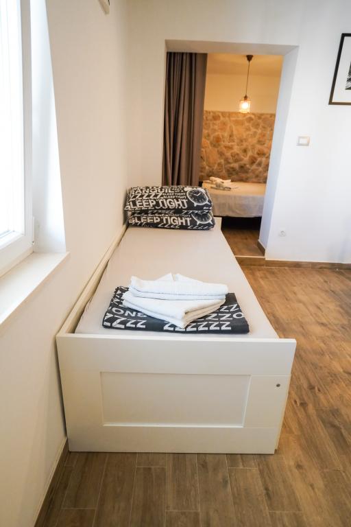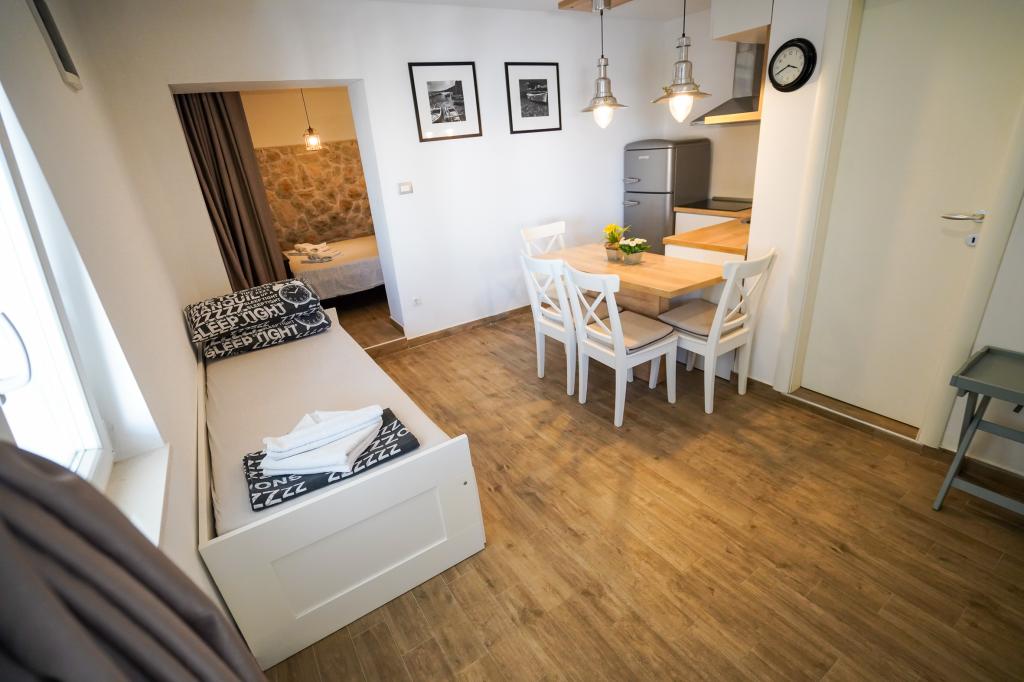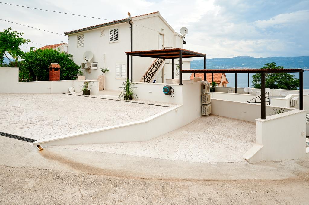 Zapraszamy do naszych pięknych apartamentów Quinn Tiger, Rustica i Sky, położonych w spokojnej części miejscowości Slatina na wyspie Čiovo. Są idealnym miejscem na relaksujący wypoczynek nad morzem, w pobliżu atrakcji kulturalnych i historycznych. Quinn Tiger wyróżnia się wyrafinowanym wzornictwem i luksusowymi detalami. Przestronne wnętrze oraz połączenie ciepłych i wyrazistych barw sprawiają, że jest to idealny wybór dla tych, którzy chcą czegoś wyjątkowego. Apartament Rustica dzieli duży wspólny taras, idealny na poranną kawę lub wieczorne spotkania towarzyskie. Rustica to połączenie nowoczesnego i tradycyjnego stylu z drewnianymi detalami, które tworzą przytulną, domową atmosferę. Sky emanuje elegancją i nowoczesnym designem. Jasne barwy i przestronna przestrzeń tworzą idealną atmosferę sprzyjającą relaksowi. Oprócz wspólnego tarasu, obiekt oferuje również własny, oddzielny taras, zapewniający pełną prywatność. Wszystkie apartamenty zlokalizowane są w prywatnym domu, co zapewnia ciszę i spokój, zaledwie 100 metrów od plaży, sklepów, restauracji i barów plażowych. Historyczne miasto Trogir, znajdujące się pod ochroną UNESCO.