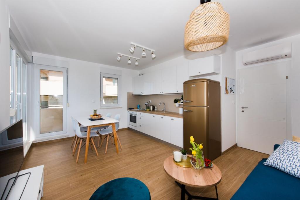 Nowo urządzone mieszkanie (pokój dzienny z dwiema sypialniami) z widokiem na morze, Žnjan-Split. Mieszkanie jest w pełni wyposażone. Mieszkanie posiada również piękny balkon z widokiem na morze. Przed apartamentem jest miejsce parkingowe. Plaża Žnjan oddalona jest od obiektu o 10 minut spacerem. Na plaży znajdują się liczne udogodnienia dla dzieci, kawiarnie itp. Do centrum miasta samochodem zajmie około 7-8 minut. W mieszkaniu jest szybki internet oraz wiele programów telewizyjnych, ponad 100 programów.