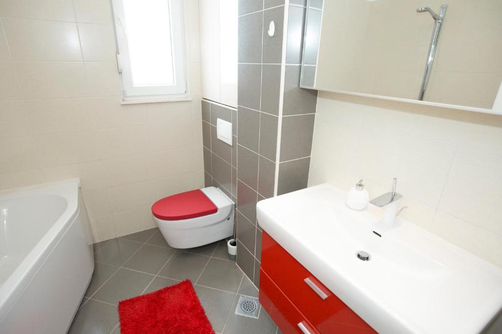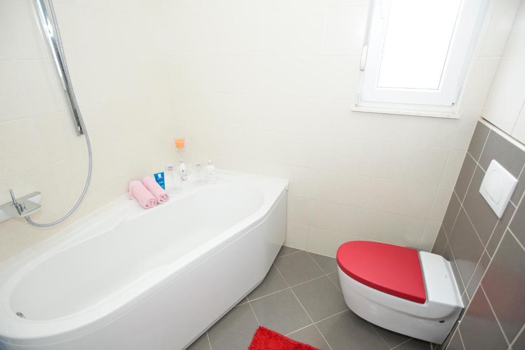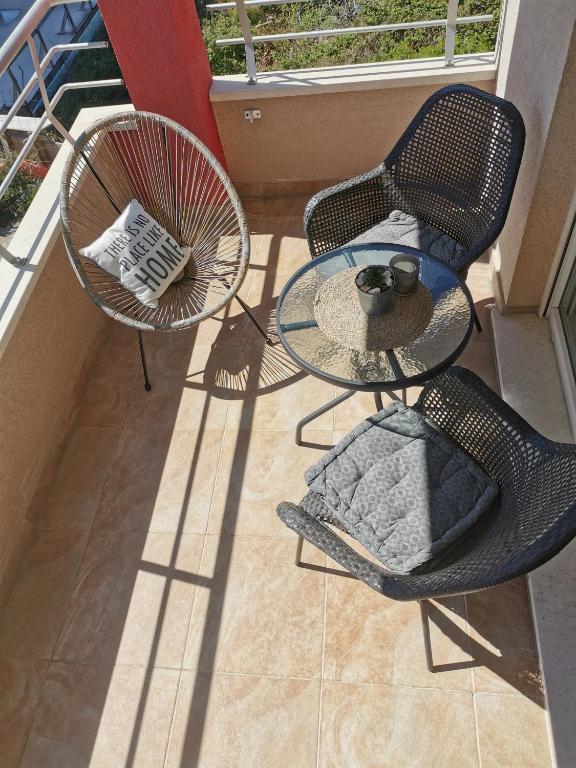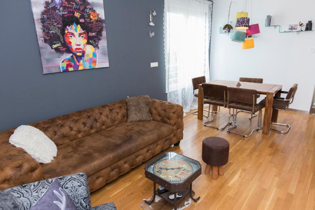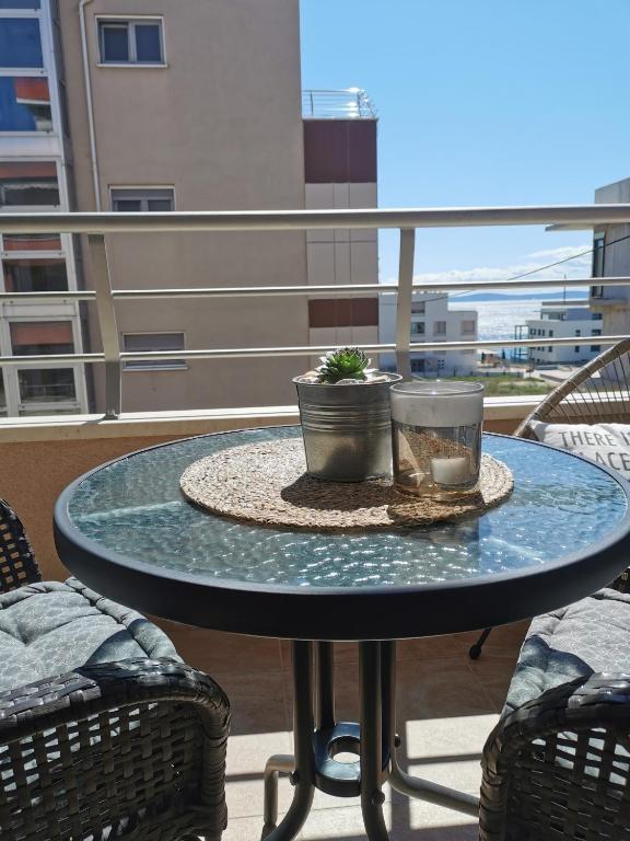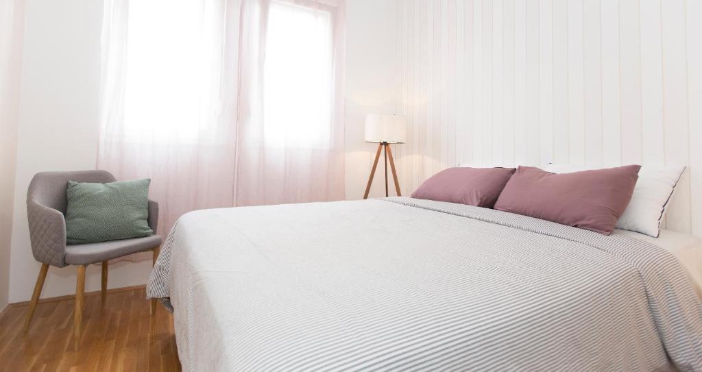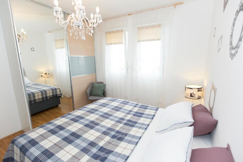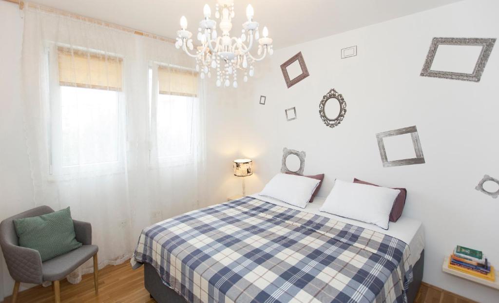 Nowocześnie urządzony apartament z salonem i jadalnią, kuchnią, dwiema sypialniami, łazienką i toaletą. W każdym pokoju znajduje się podwójne łóżko. Mieszkanie znajduje się w spokojnej okolicy Znjan, 5 minut spacerem do plaży. Mieszkanie posiada dwa klimatyzatory, dostęp do internetu oraz zewnętrzne miejsce parkingowe.