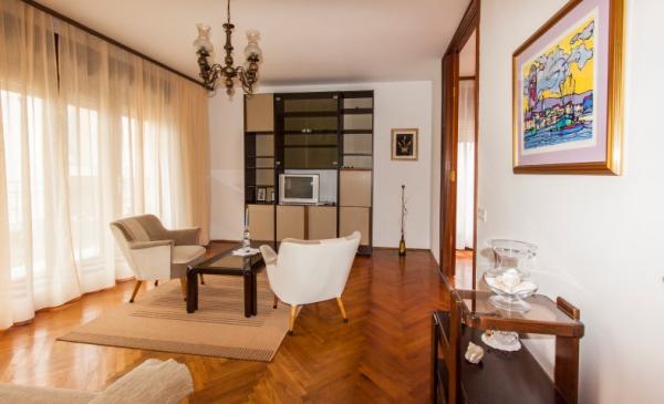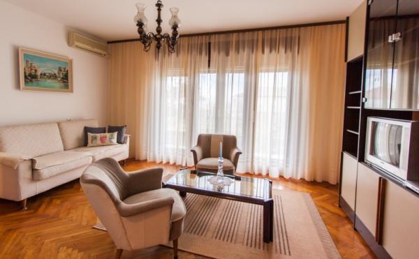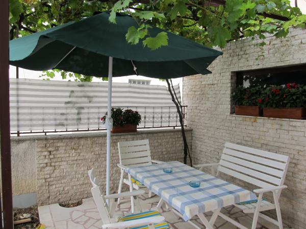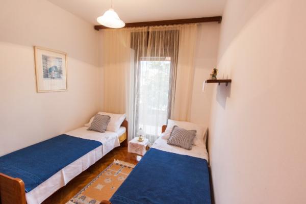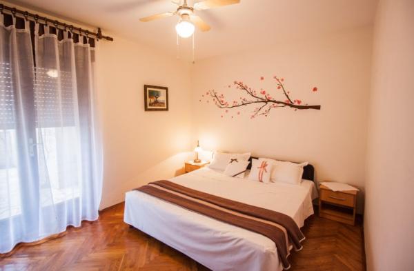 Mieszkanie znajduje się w rodzinnym domu w spokojnej okolicy, w otoczeniu zieleni. . Składa się z dwóch sypialni, dużego salonu, dobrze wyposażonej kuchni, łazienki i przestronnego przedpokoju. W ogrodzie znajduje się część wypoczynkowa w cieniu. Mieszkanie jest klimatyzowane. Znajduje się 10 min. samochodem od portu promowego i centrum miasta. Do plaży można dojść także pieszo.