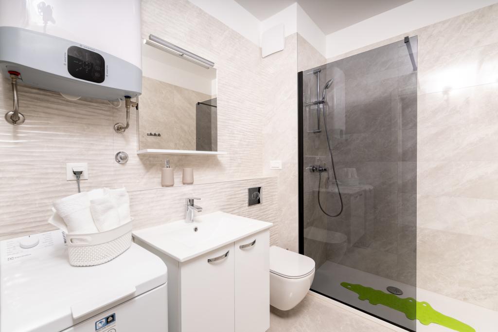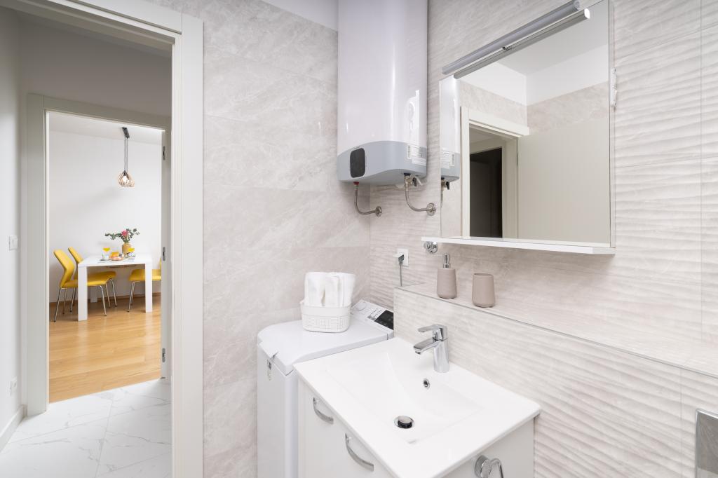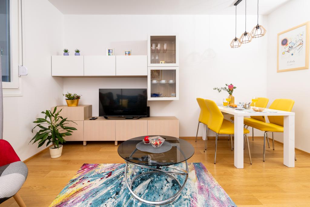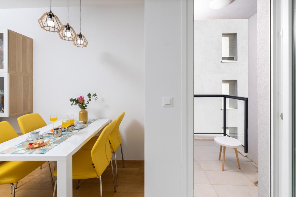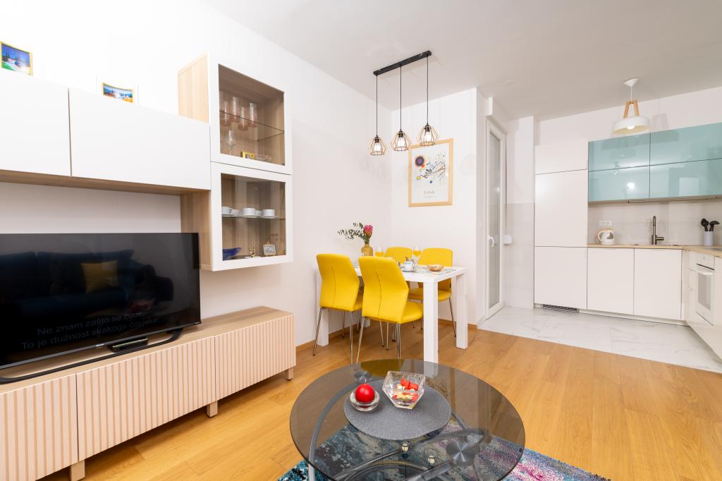 W pełni i nowocześnie wyposażone mieszkanie w nowym budynku w mieście Split, Split - Środkowa Dalmacja. Budynek położony jest w spokojnej części miasta (Trstenik), 300 metrów od morza i dużej plaży żwirowej. Gospodarze nie mieszkają w budynku. W apartamencie jest bezpłatny dostęp do internetu. W promieniu 1 km znajdują się: sklep, targ, apteka, pogotowie ratunkowe, bankomat, bank, klub nocny, restauracja, kawiarnia. Centrum, dworzec autobusowy, port promowy znajdują się w odległości ponad kilometra. W apartamencie może nocować 2+1 gości. Łóżka są rozmieszczone w sypialni i salonie. Goście mogą podziwiać widok na morze z własnego balkonu. Goście mogą korzystać z garażu po uzgodnieniu. Garaż znajduje się w budynku, połączony z apartamentem windą.