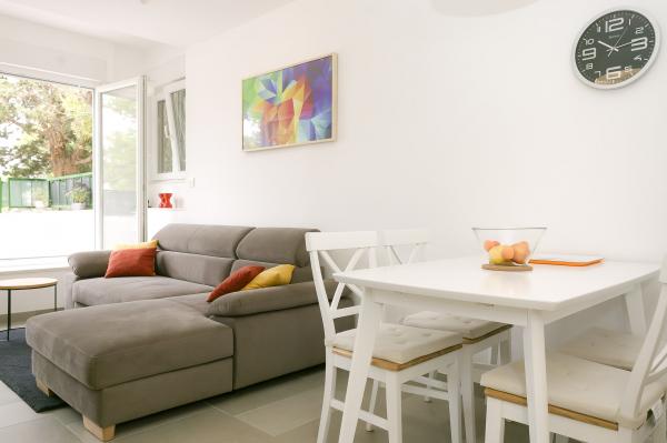 Nowoczesne, w pełni umeblowane mieszkanie z dwoma sypialniami, pełne naturalnego światła, salon, który jest w pełni otwarty na umeblowany taras 20m2, znajduje się w pobliżu głównego wejścia do parku leśnego Marjan i 10 minut spacerem od centrum miasta, plaży, stadionu i większość rzeczy może być interesujące, gdy jesteś w Split. Bezpłatne parkowanie na ulicy. Mieszkanie znajduje się w budynku z 5 mieszkań na parterze z oddzielnym wejściem. Pięknie urządzone i wyposażone, aby sprostać wymaganiom współczesnego życia. Szybki bezprzewodowy dostęp do Internetu, Android Ambilight telewizor, telewizja kablowa, energooszczędne klimatyzatory i urządzenia kuchenne, inteligentna pralka i moskitiery na wszystkich oknach na pełnej satysfakcji. Prawdopodobnie nie trzeba będzie ogrzewanie podłogowe, ale jest tam, jeśli zdecydujesz się odwiedzić nas w zimie. Szczególną uwagę poświęca się łóżka, spania i relaksu. Taras 20m2 jest twoje cieszyć się świeżą bryzę, która pochodzi z lasu popijając swój ulubiony napój.