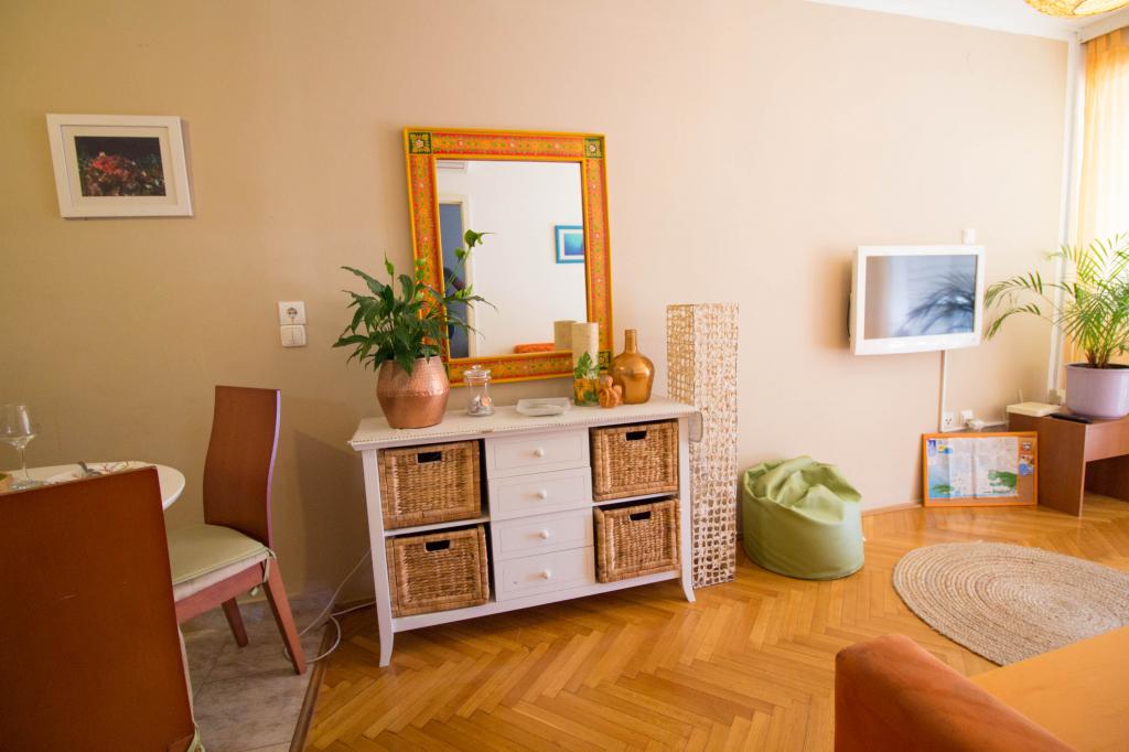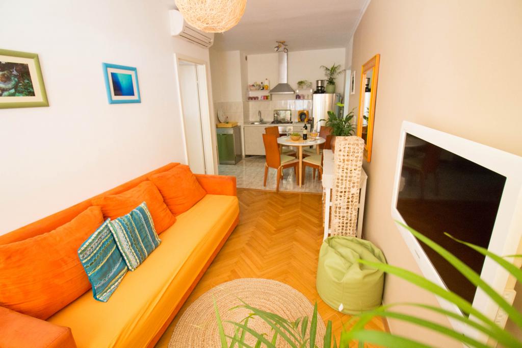 Apartament Riva znajduje się bezpośrednio na wybrzeżu, w samym centrum Splitu, w zachodniej części Riva, nadmorskiej promenady, która z jednej strony prowadzi do centrum miasta, az drugiej do pięknych plaż miejskich i lasu Marjan Park. Apartament przeznaczony jest do komfortowego pobytu dwóch osób z możliwością zakwaterowania do czterech osób. Składa się z jednej sypialni, łazienki, kuchni i salonu oraz loggii z widokiem na morze, nabrzeże i pobliską przystań ACY. Wyposażony w nowoczesny sprzęt, aby pobyt w nim był jak najbardziej komfortowy i beztroski. Posiada klimatyzację, telewizję satelitarną, bezprzewodowy internet, prysznic z masażem, w pełni wyposażoną kuchnię.