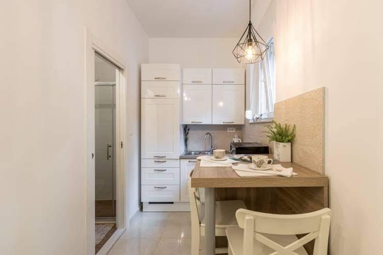 Nowo wyremontowany apartament typu studio w Splicie, Bačvice. Znajduje się w bezpośrednim sąsiedztwie najsłynniejszej plaży miejskiej. Wszystkie niezbędne obiekty znajdują się w odległości do 100m. Obiekt położony jest 5 minut spacerem od nabrzeża i Pałacu Dioklecjana, który zdecydowanie warto odwiedzić. Przed apartamentem znajduje się duży taras do użytku. Miejsce parkingowe znajduje się obok budynku na terenie ogólnodostępnym.
