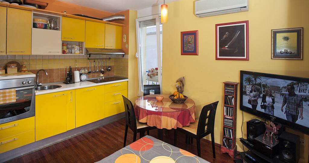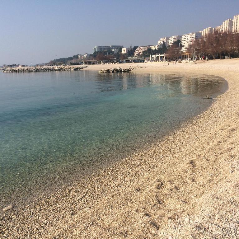 Apartament SŁONECZNY ŻÓŁTY z balkonem i miejscem parkingowym znajduje się na plaży ŽNJAN, 100 m od najlepszej żwirowej plaży w Splicie i długiej promenady nad morzem. Plaża ŽNJAN to kilometrowa plaża, na której znajduje się wiele barów i restauracji. Tylko 20 m od apartamentu znajduje się bistro - kawiarnia, 50 m sklep, 3,6 km Pałac Dioklecjana. Apartament posiada darmowe WI-FI, klimatyzację, TV, radio z CD. Do dyspozycji Gości jest również w pełni wyposażona kuchnia ze zmywarką i piekarnikiem. Łazienka wyposażona jest w pralkę, bezpłatny zestaw kosmetyków i ręczniki. Z łazienki można podziwiać piękny widok na ogród. Przed apartamentem znajduje się miejsce parkingowe należące do apartamentu oraz grill na świeżym powietrzu z kamiennym stołem i ławami, na których można przygotowywać i delektować się potrawami z grilla. Jeśli chcesz zwiedzić okolicę, znajduje się Katedra św. Domnius - 34 km), Muzeum Miejskie w Splicie (3,4 km), lotnisko w Splicie znajduje się 15 km od apartamentów.