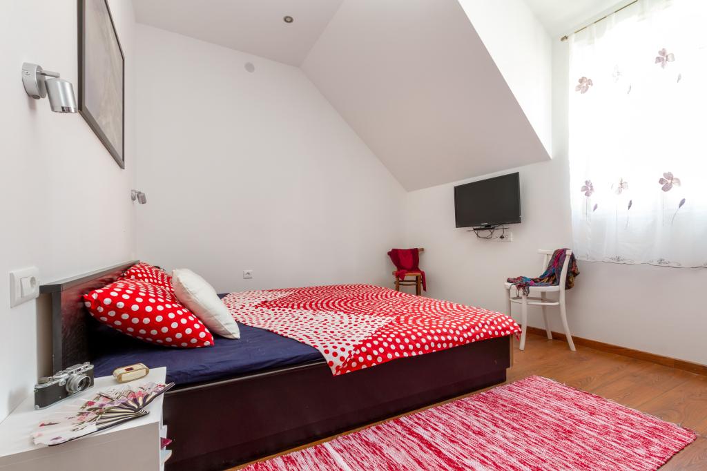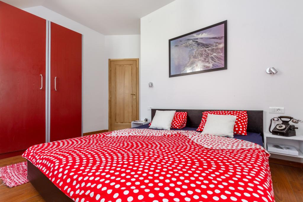 Mieszkanie 74 m² w samym centrum Splitu, w bezpośrednim sąsiedztwie wszystkich atrakcji historycznych i wydarzeń towarzyskich, muzeów, galerii, plaż miejskich, placów zabaw dla dzieci, supermarketów, rynków, restauracji, kawiarni, biur podróży, sklepów z pamiątkami...etc. Wszystko to znajduje się w promieniu od 5 do 300 metrów od apartamentu. Znajduje się na 2 (ostatnim) piętrze starego odnowionego domu z dużym słonecznym tarasem na dachu chronionym przed widokiem sąsiadów, 2 sypialniami - jedna dla dwóch osób (łóżko małżeńskie 2x1,80m) i drugi pokój dla jednej osoby (łóżko 2x0,80m) oraz szafy ubraniowe. W apartamencie znajduje się również dobrze wyposażona kuchnia ze wszystkim, co potrzebne do przygotowania różnych posiłków. Do dyspozycji Gości jest także salon z jadalnią oraz przestronna łazienka. Dom, w którym znajduje się mieszkanie, został wybudowany ponad 500 lat temu. W starożytności był to kościół św. Piotra, który został zdesakralizowany w XVIII wieku. Dlatego to mieszkanie nazywa się Apartament Sv. Piotr Stary.